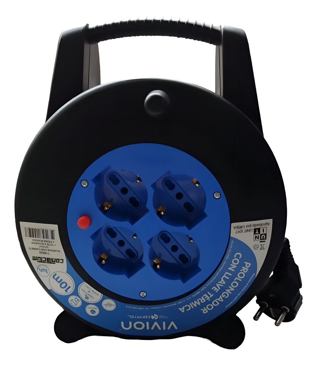 Alargue Carrete Enrollador 10 Metros – 4 Tomas Shucko Vivion Negro