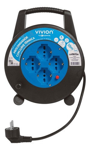 Alargue Carrete Enrollador 10 Metros - 4 Tomas Shucko Vivion Negro cantidad