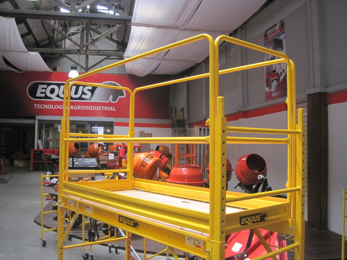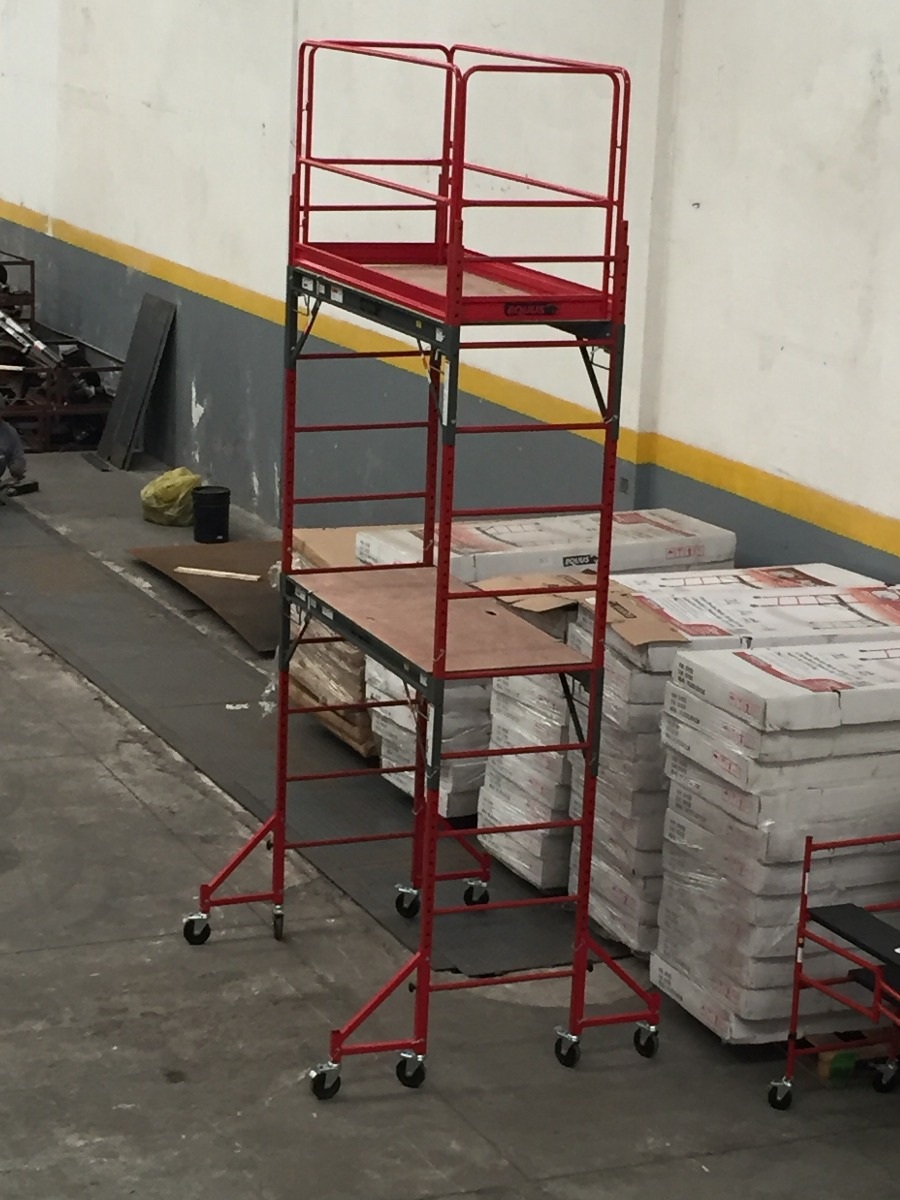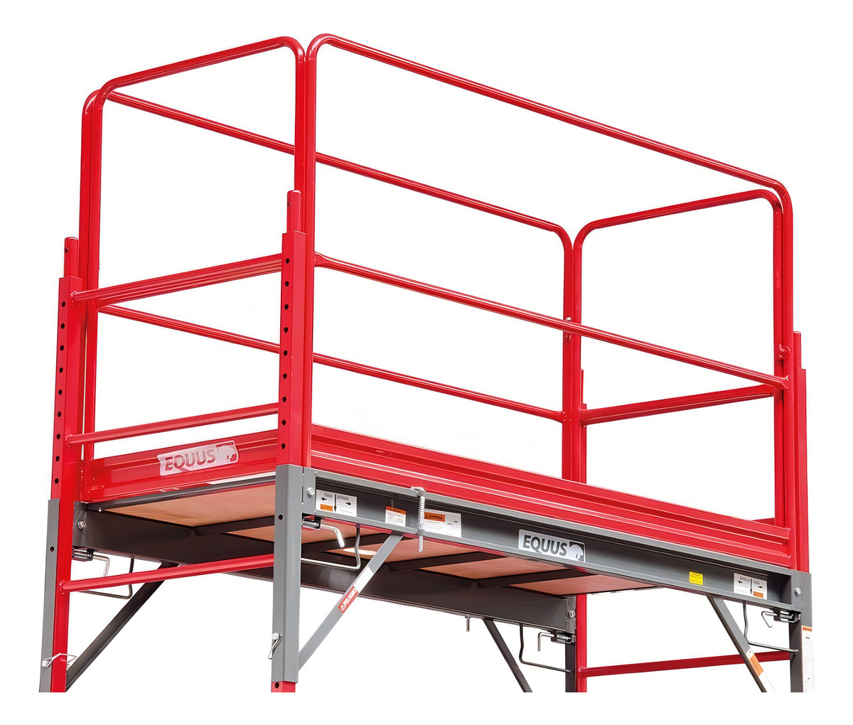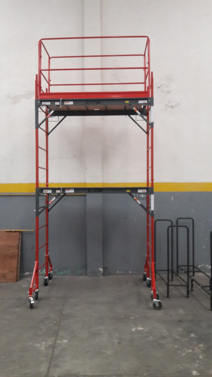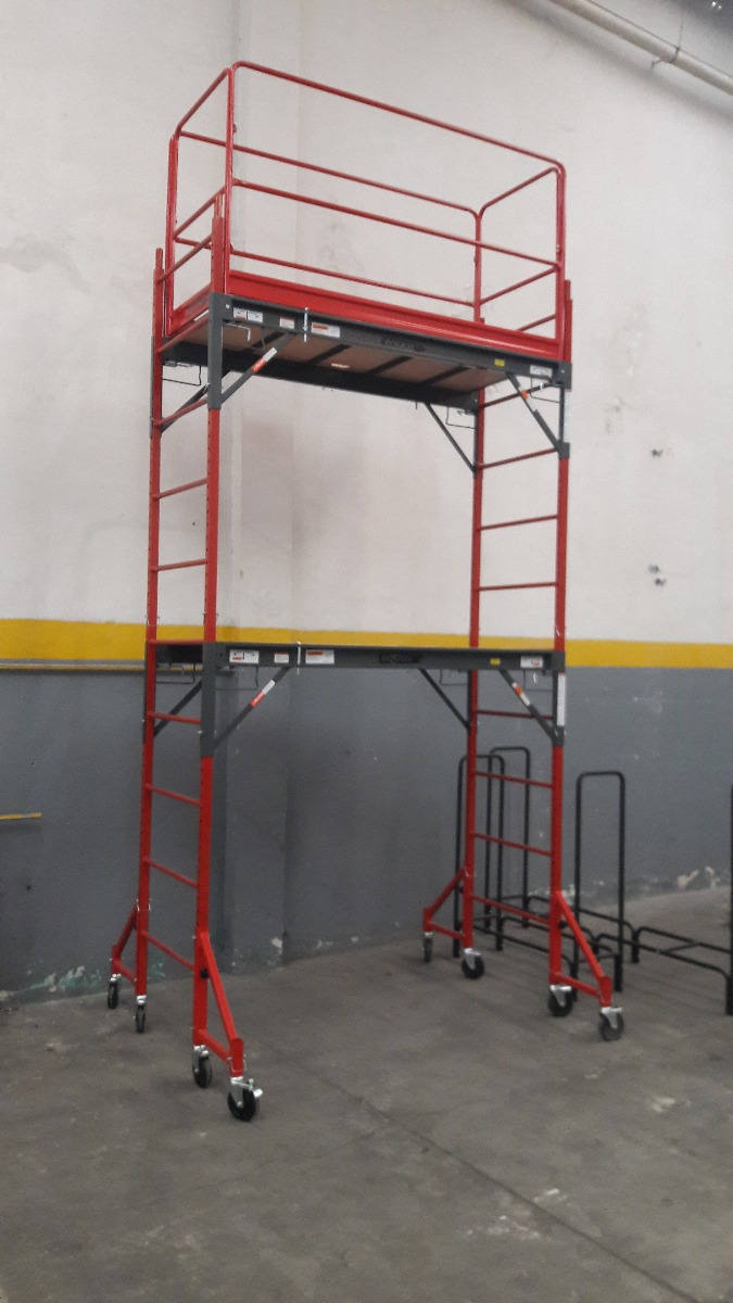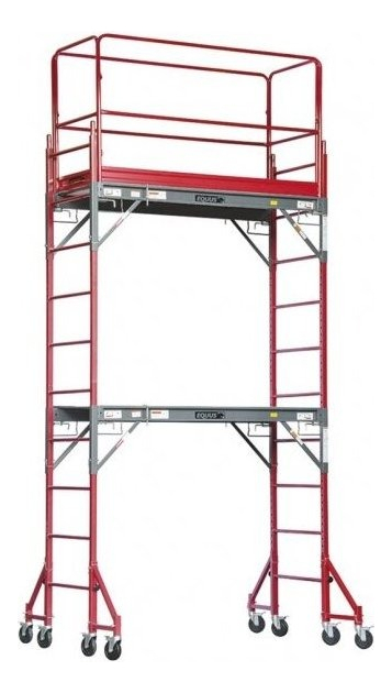 2 Andamios Multiuso con ruedas con horquilla y frenos + Baranda + Set estabilizador