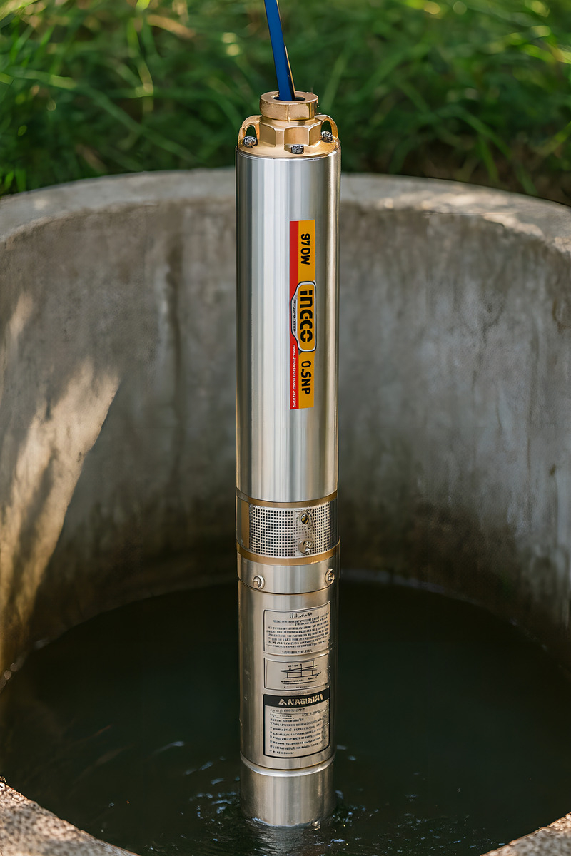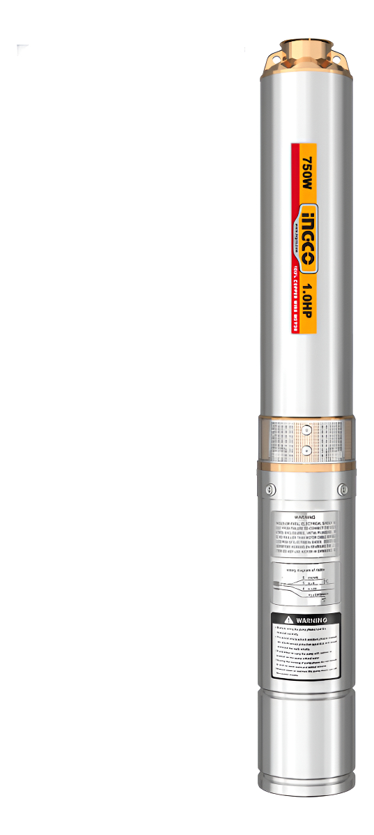 BOMBA SUMERGIBLE POZO PROFUNDO SEMISURGENTE 4″ INGCO 750W 6.7M³/H CON CONTROLADOR DWP750621