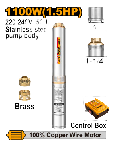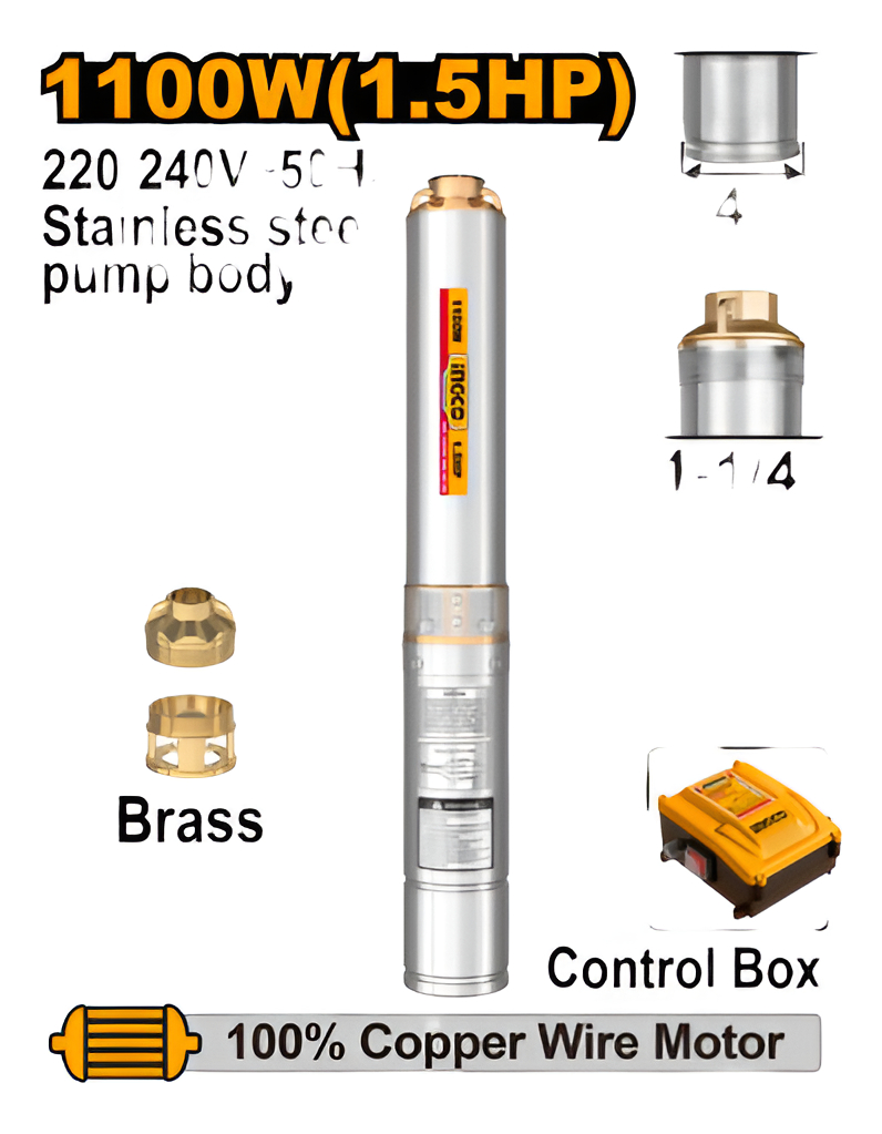 BOMBA SUMERGIBLE TUBO 1100W 1.5HP POZO SEMISURGENTE INGCO DWP1100621
