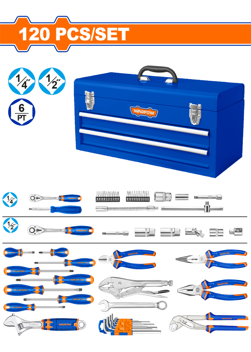 Caja 120 Herramientas Metal 3 Estantes 520mm Wadofw Whs3120