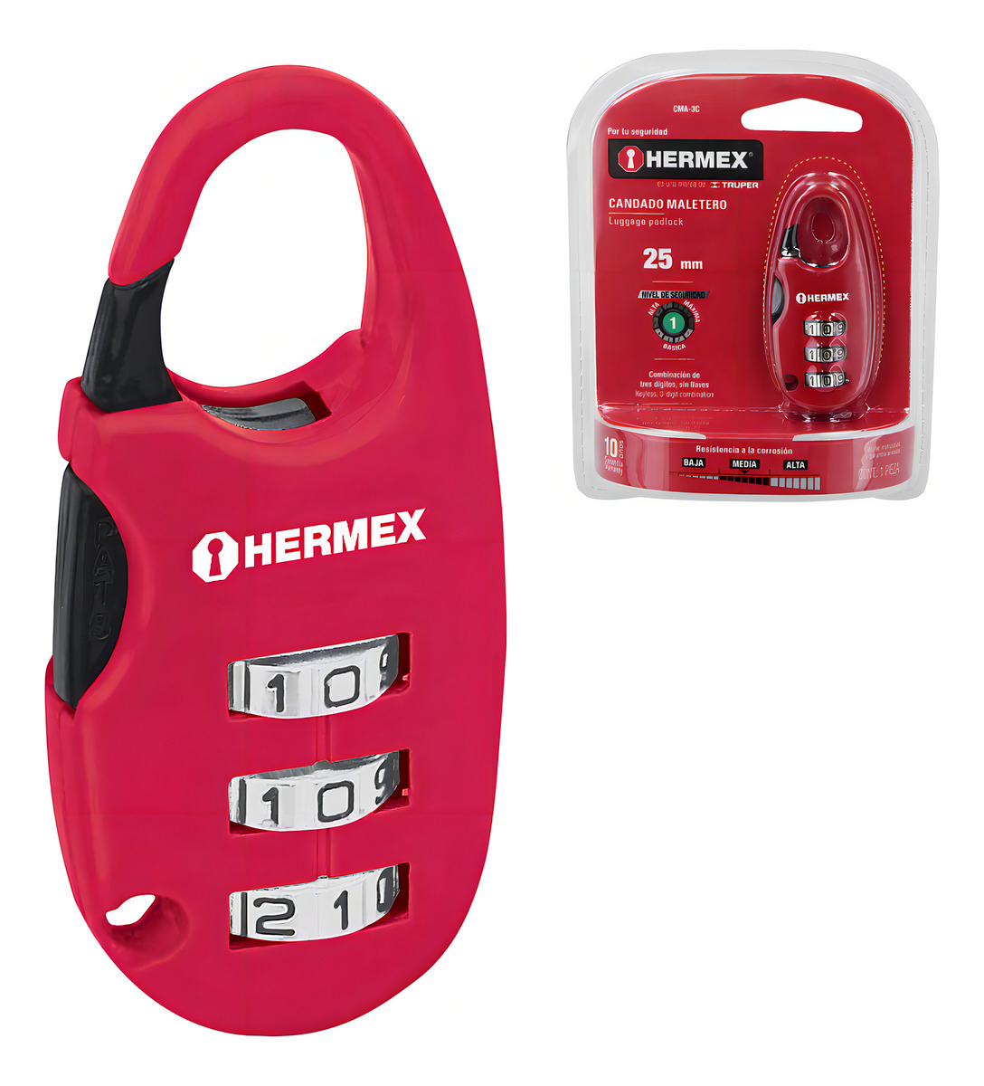 Candado 25 Mm Para Maleta Con Clave Hermex #cma-3c Rojo