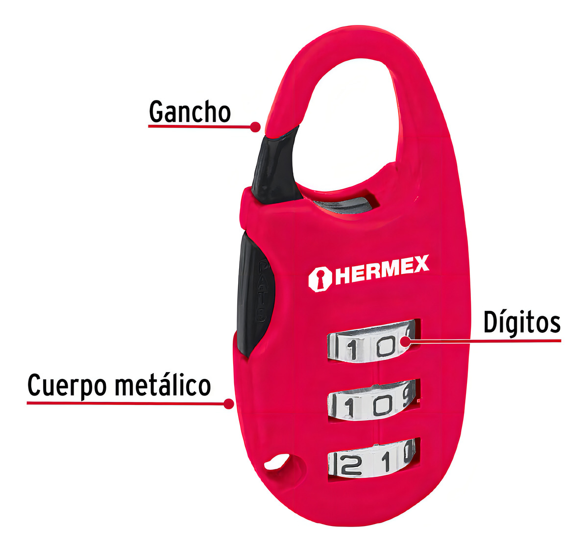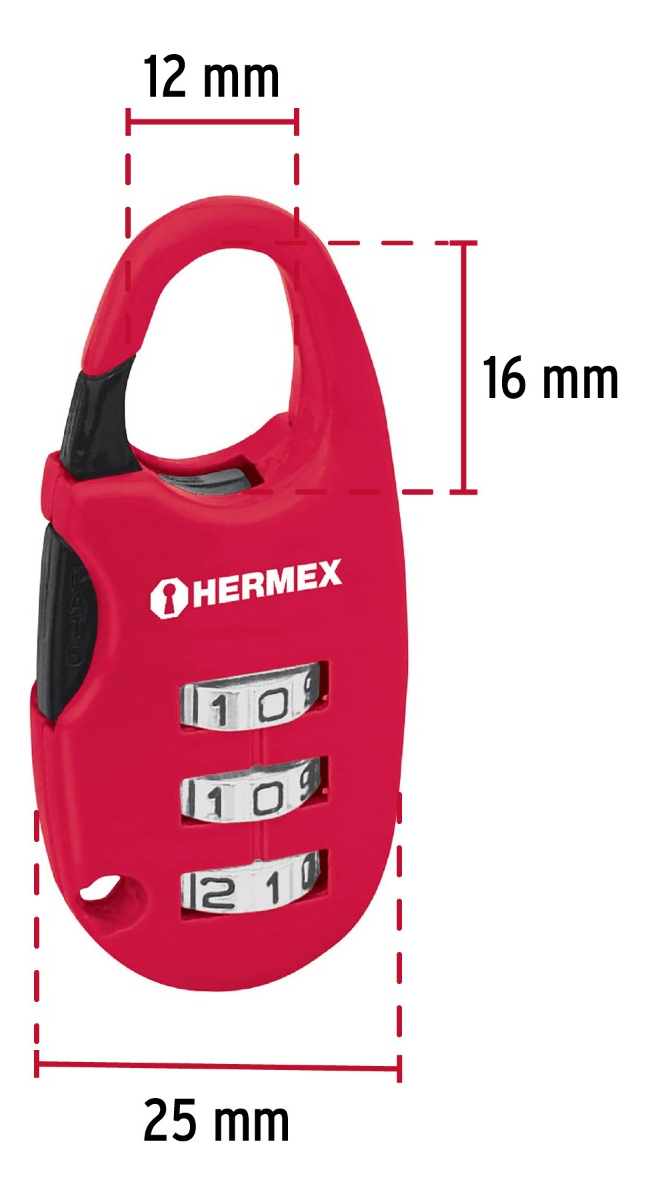/ Candado 25 Mm Para Maleta Con Clave Hermex #cma-3c Rojo