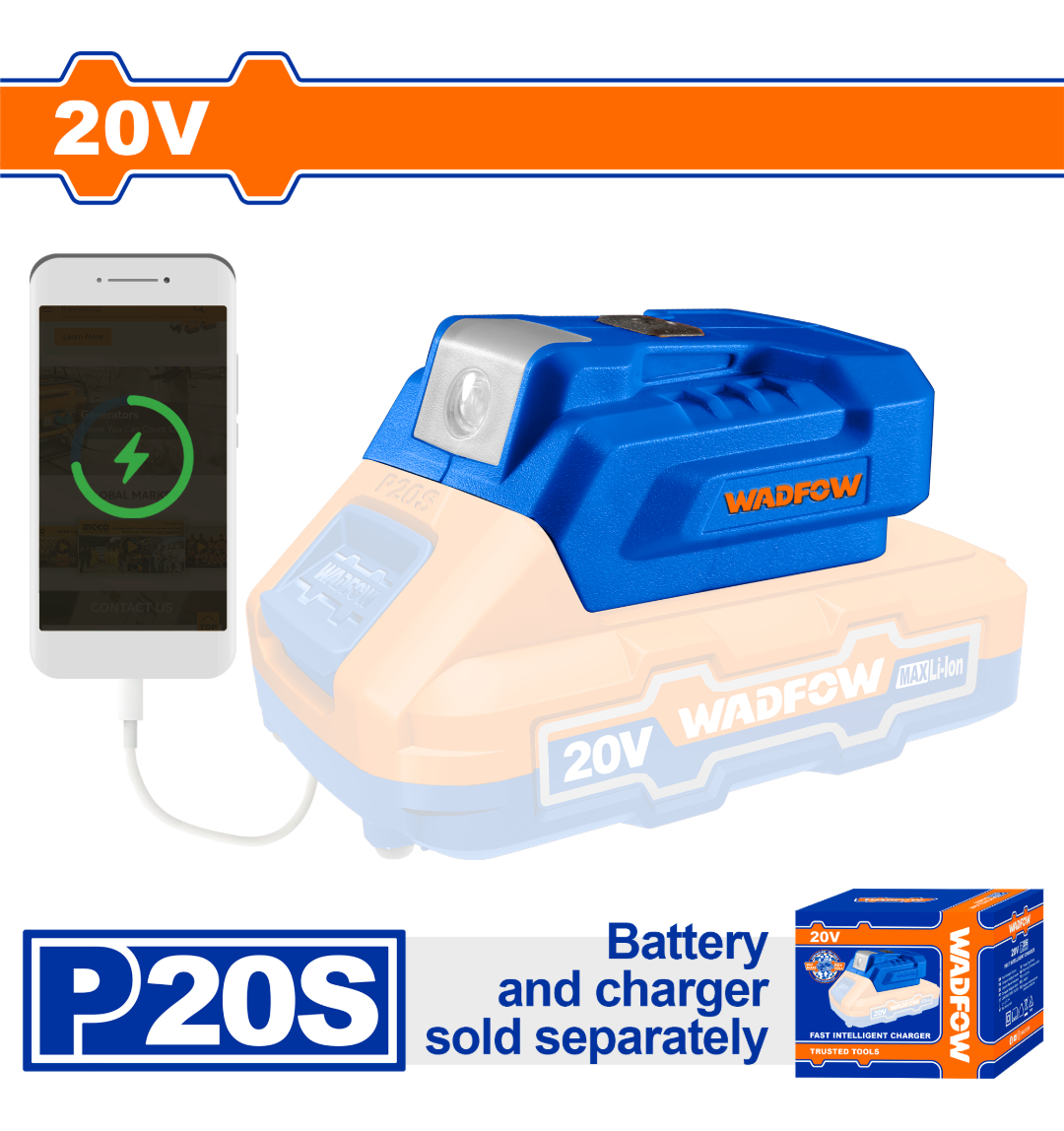 / Cargador Inalambrico Usb De Baterias 20v – Wucp118 Wadfow