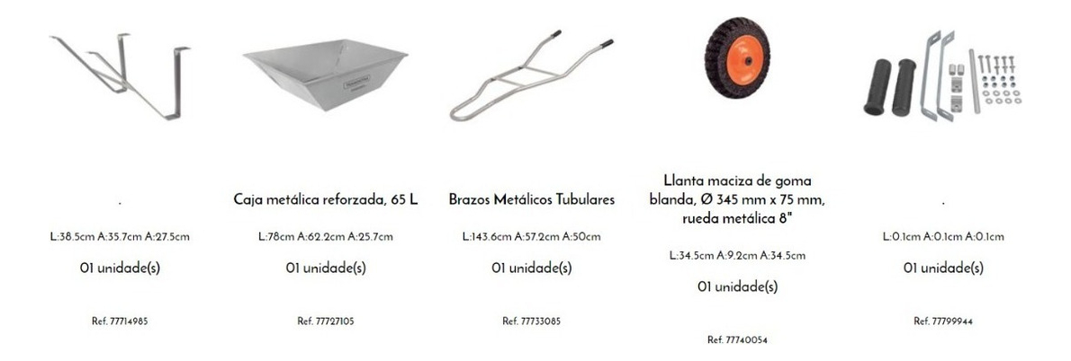 Carretilla Cuadrada con Rueda Maciza 65 Lts Tramontina:
