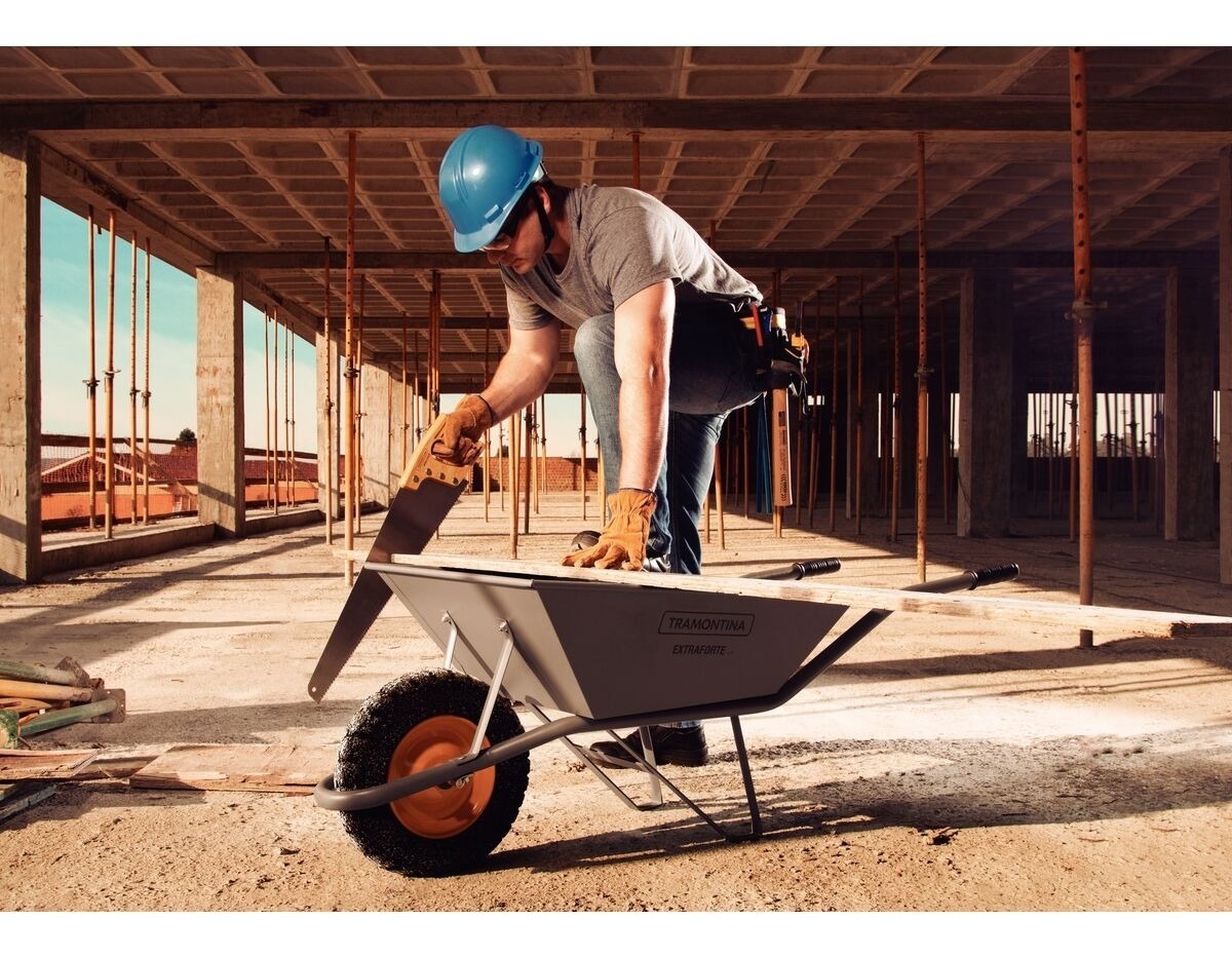 Tierra, mortero o escombros: no importa lo que usted necesita cargar, el carro de mano Extraforte de Tramontina garantiza alta resistencia, aliada a un óptimo acabado. Producto fabricado según norma ABNT NBR 16269.
