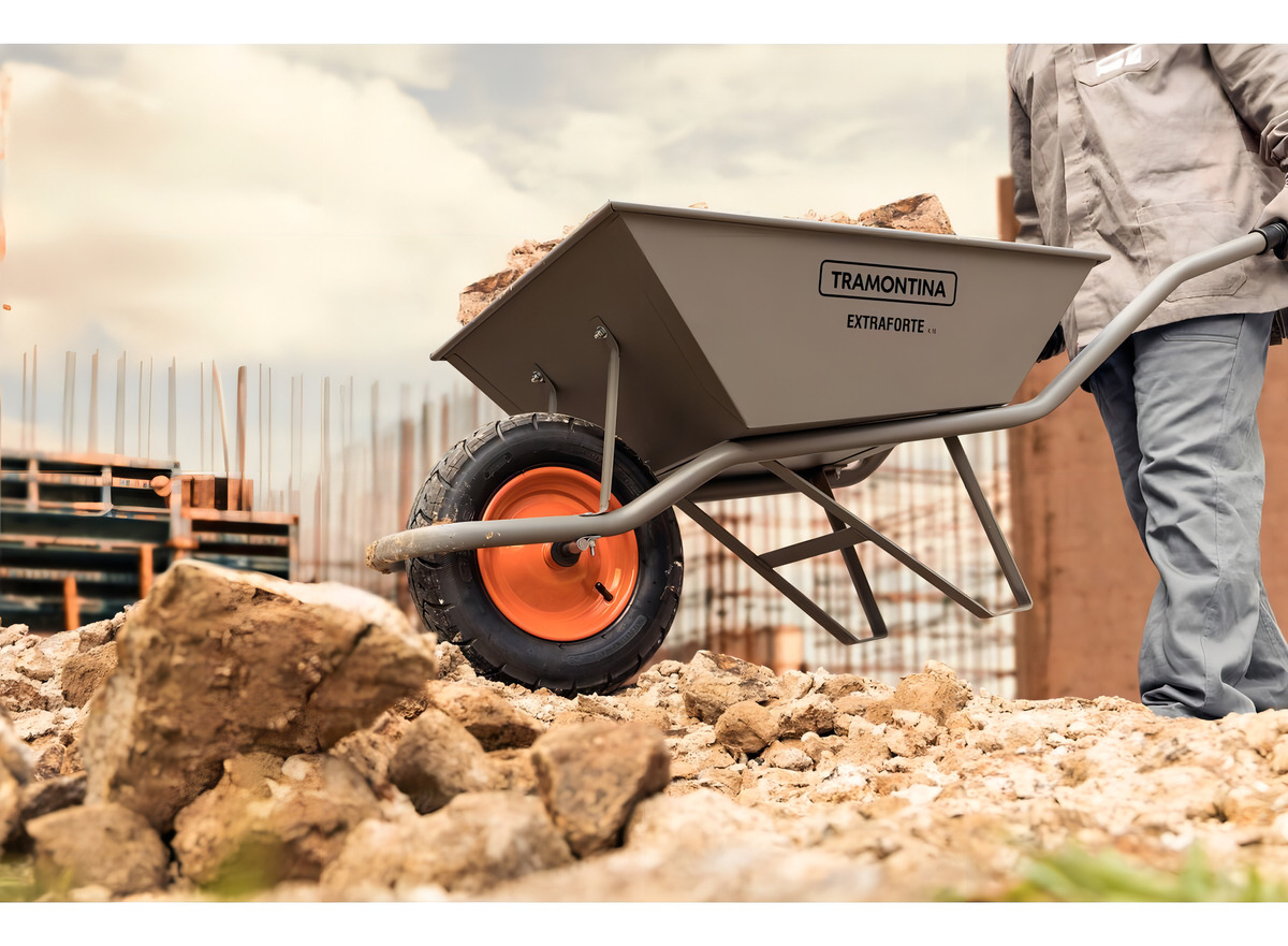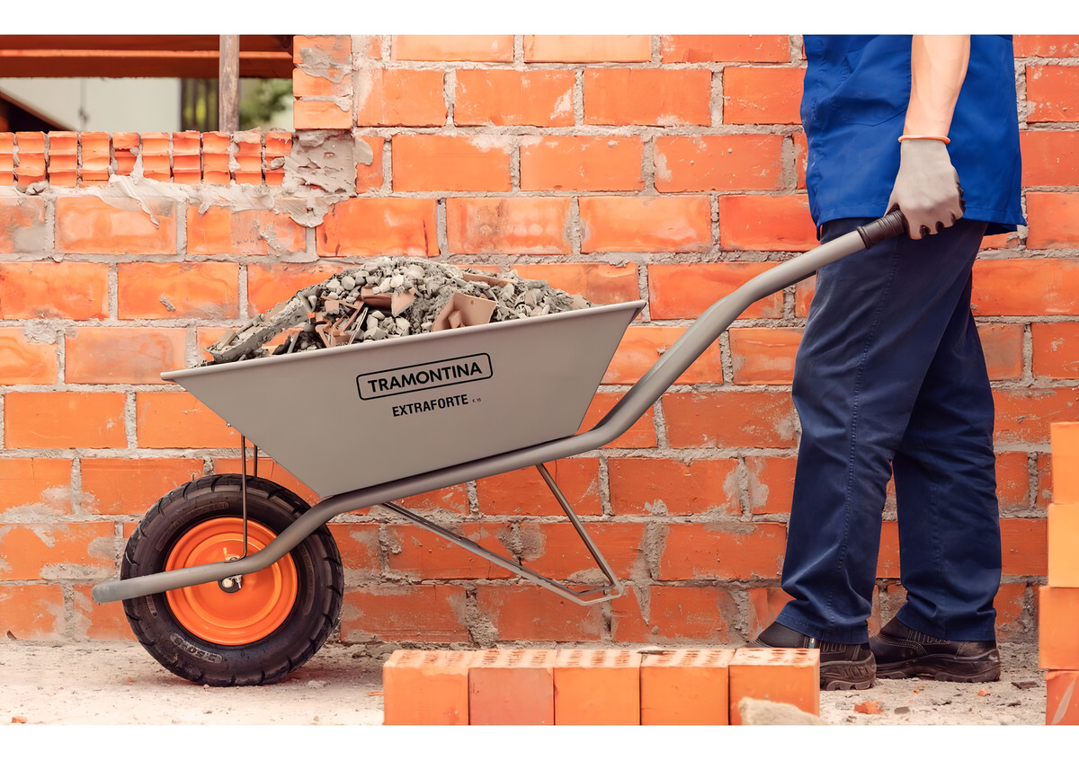La carretilla Tramontina está diseñada para uso general, principalmente para la construcción civil, cuando se transportan herramientas y diversos materiales, como tierra, arena, mortero y escombros. Certificación