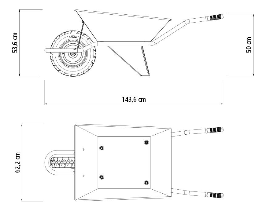 Las carretillas Tramontina se fabrican mediante procesos altamente tecnológicos, que garantizan una alta resistencia, una excelente calidad y un buen acabado de los productos. La carretilla se produce con materias primas de alta calidad. Tiene propiedades especiales de estampado, lo que hace que los cubos sean más fuertes y duraderos. Acabado con recubrimiento electrostático en polvo, que tiene una mejor presentación visual y una mayor protección contra la oxidación. Empuñaduras ergonómicas. Borde reforzado. Eje de acero de alta resistencia y casquillo de nailon autolubricante. Cuchara metálica reforzada de 0,9 mm [placa 20], con una capacidad de 65 litros, brazo metálico tubular de 1,5 mm. Neumático entubado de 3,5/8 pulgadas.