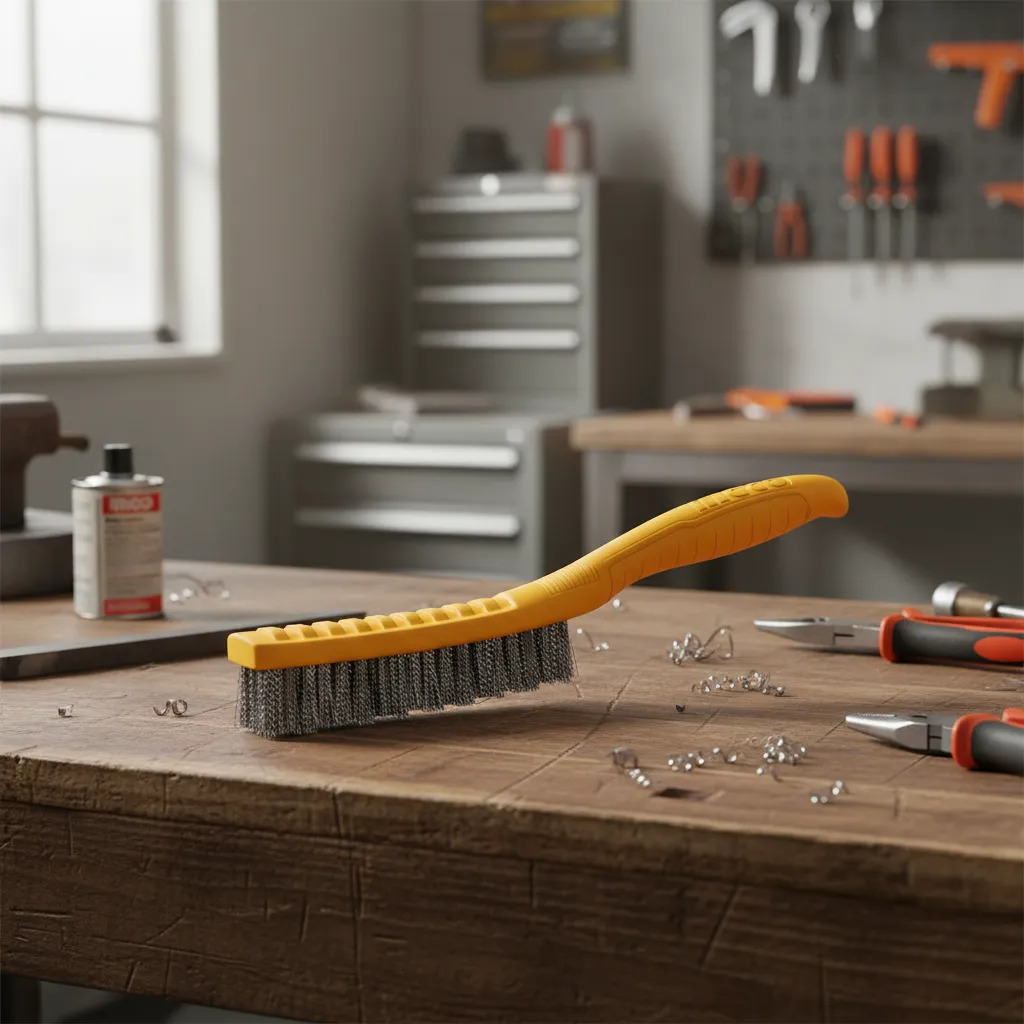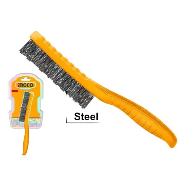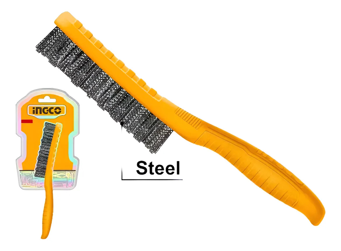 Las cerdas de acero garantizan una durabilidad excepcional y una eficacia superior en la eliminación de óxido, pintura y suciedad. Su mango de plástico proporciona un agarre cómodo y seguro, permitiendo un uso prolongado sin fatiga.