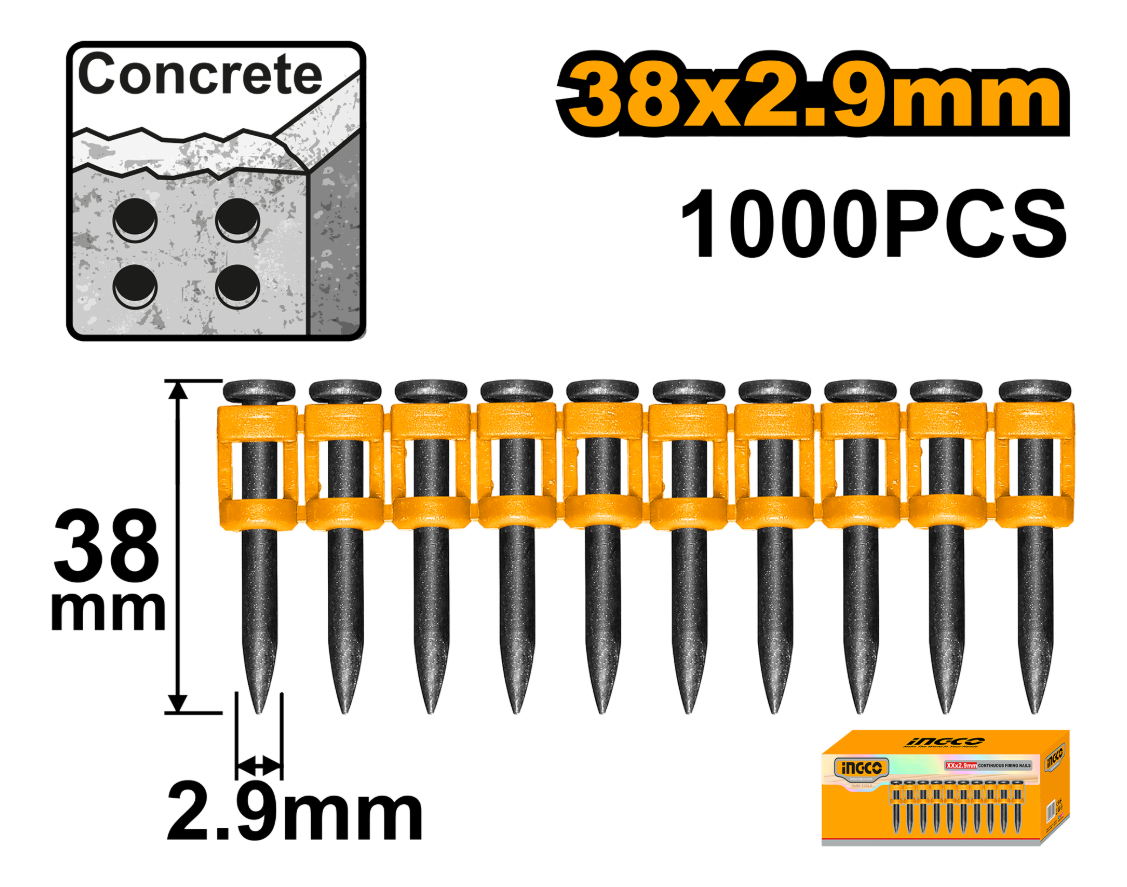 CLAVOS CONCRETO 38 x 2.9MM X 1000PCS INGCO ANA02381