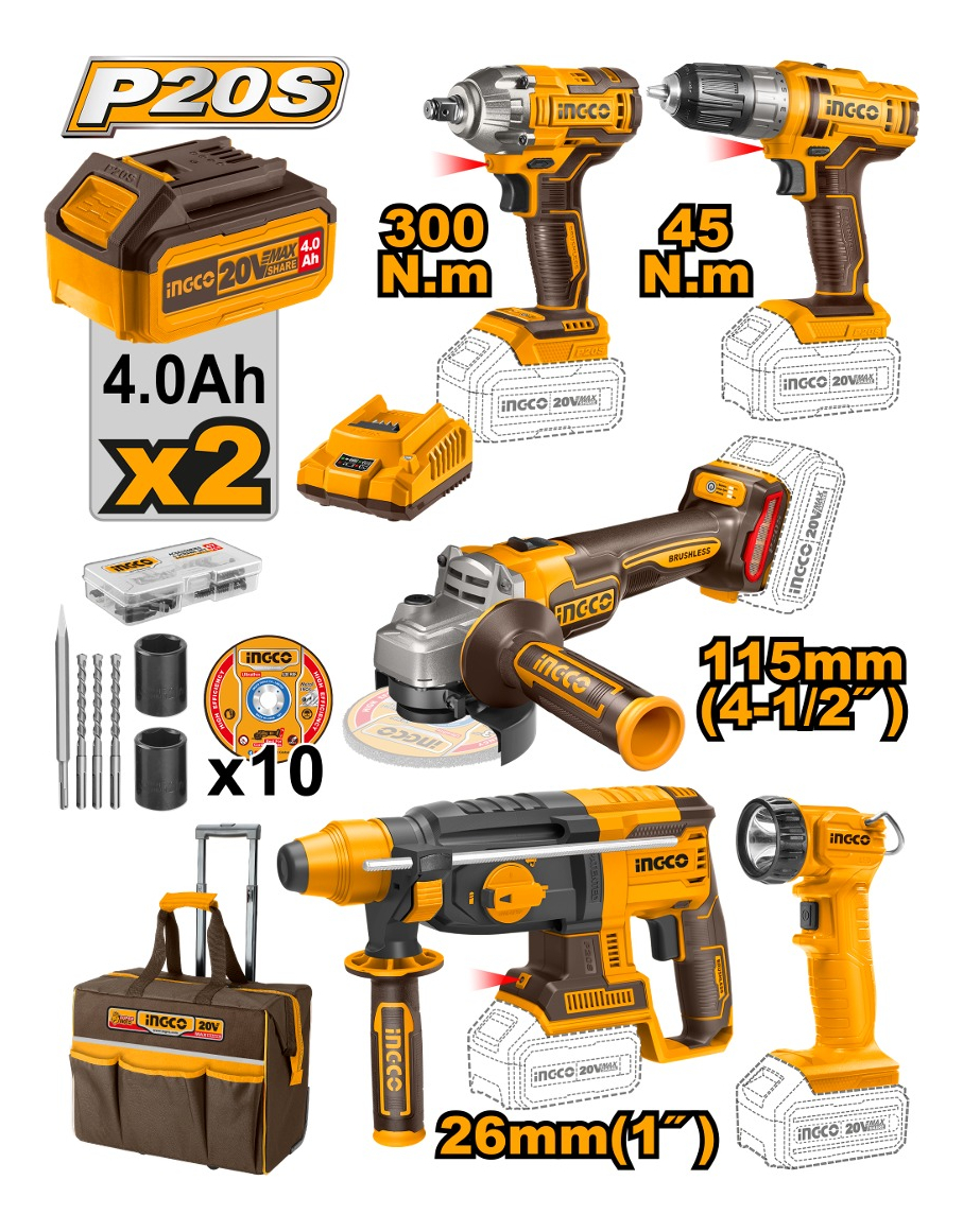 COMBO 5 HERRAMIENTAS A BATERIA 20V+VALIJA CON 2 BAT Y CARG