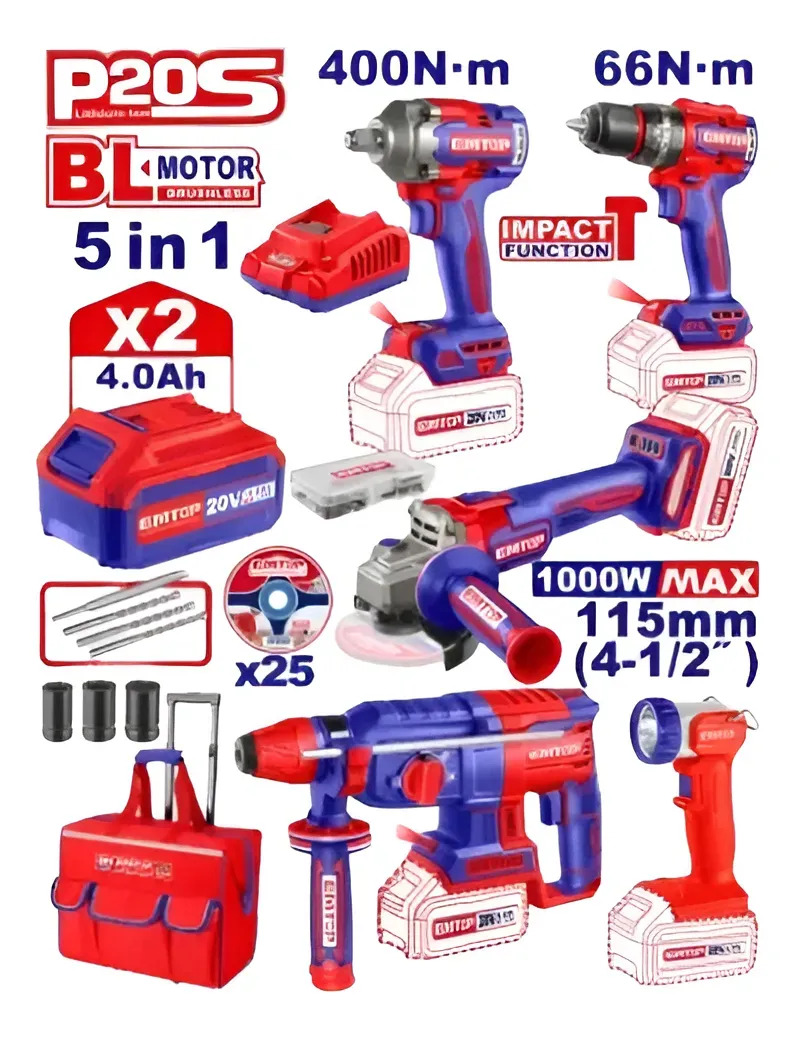 Combo Kit De Herramientas 20v Brushles 5 En 1 Emtop Eckl2059