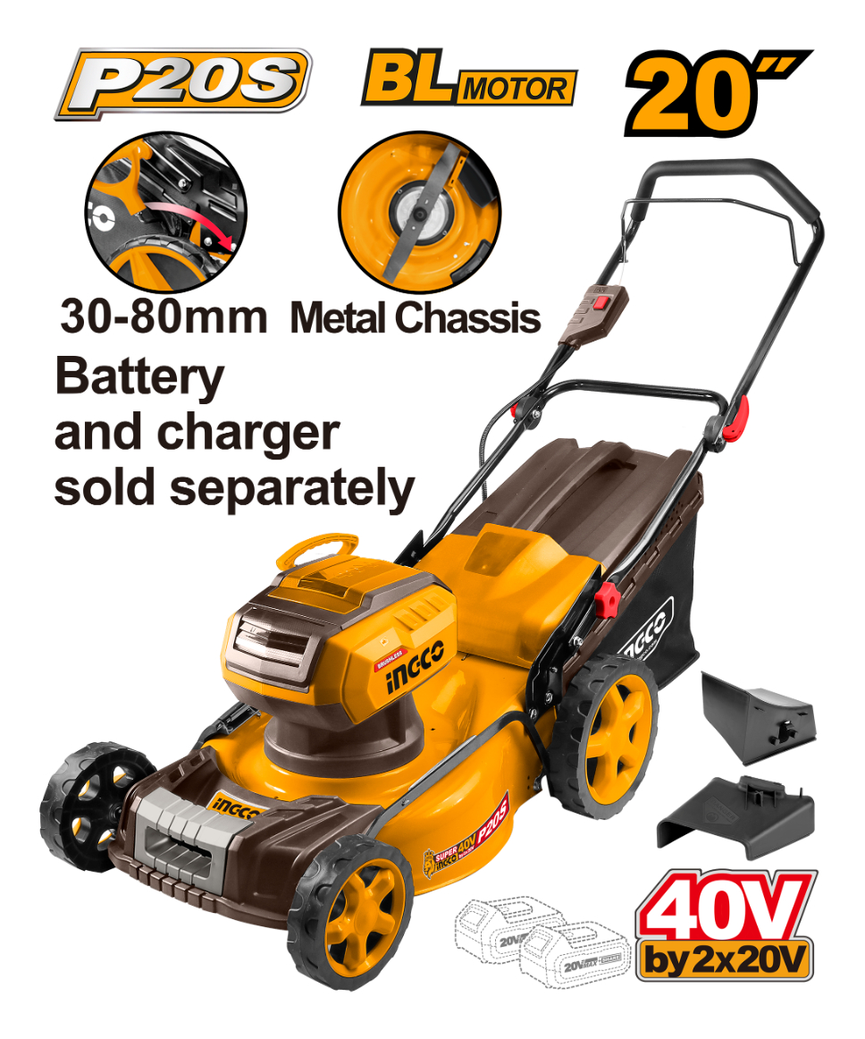 CORTA CESPED 20″ A BATERIA P20S 20V + ACCESORIOS, SIN CARGADOR Y SIN BATERIA INGCO LMLI4020