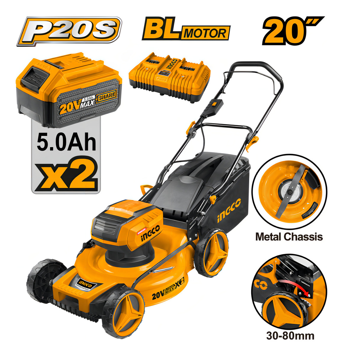 CORTA CESPED 20V 20″ P20S C BAT Y CARGADOR LMLI20202 INGCO – LMLI20202