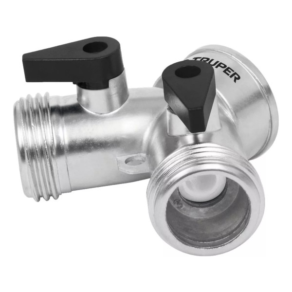 Toma Hembra de 3/4″ que deriva en 2 machos 3/4″ con llaves de paso independientes.