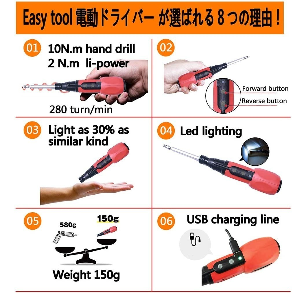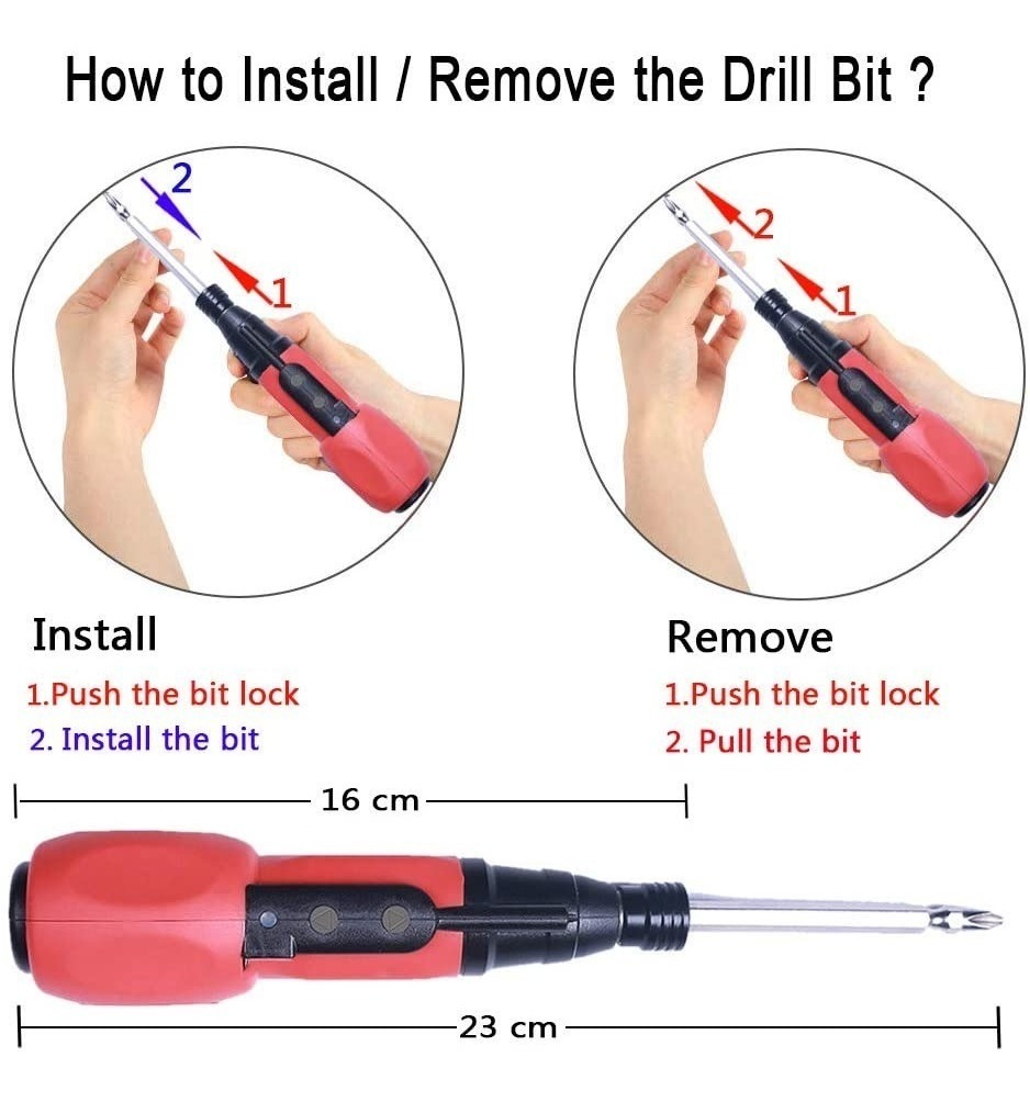 Uso: para el montaje de muebles, instalación y montaje de almacenamiento Paquete: incluye 12 diferentes usos de taladro y cable de carga USB,