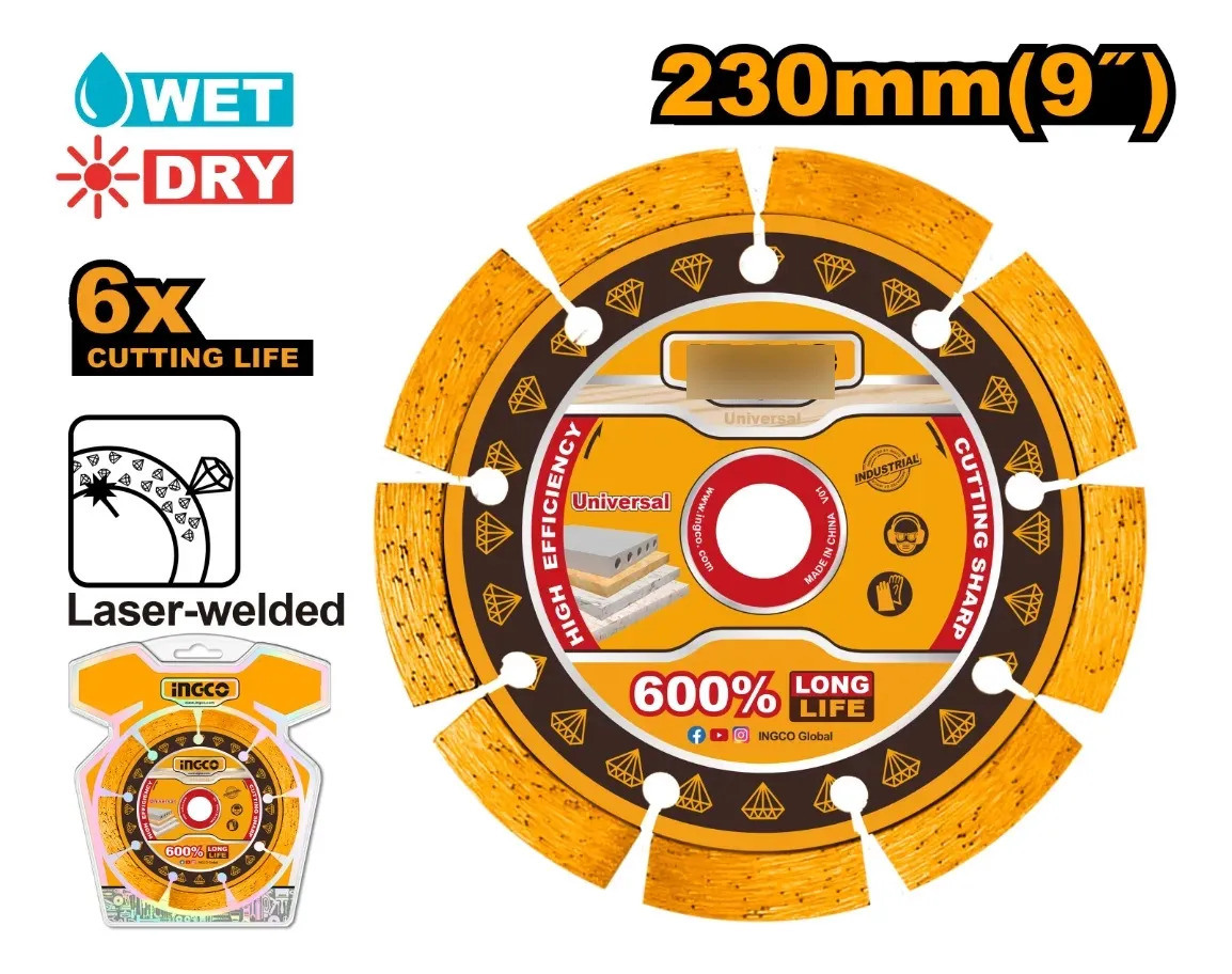 DISCO DIAMANTADO 9″ P/CORTE HUMEDO Y SECO