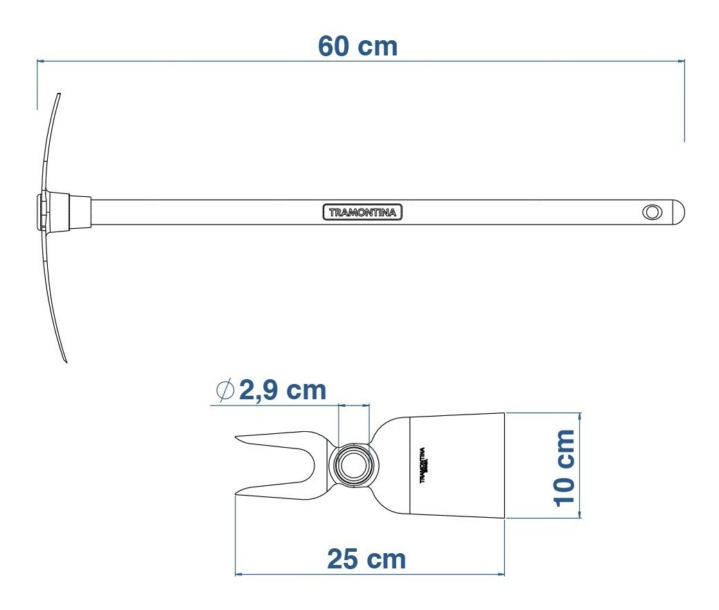 – O cabo de 60 cm desta ferramenta, além de possuir ótima resistência, é produzido com madeira de origem renovável.