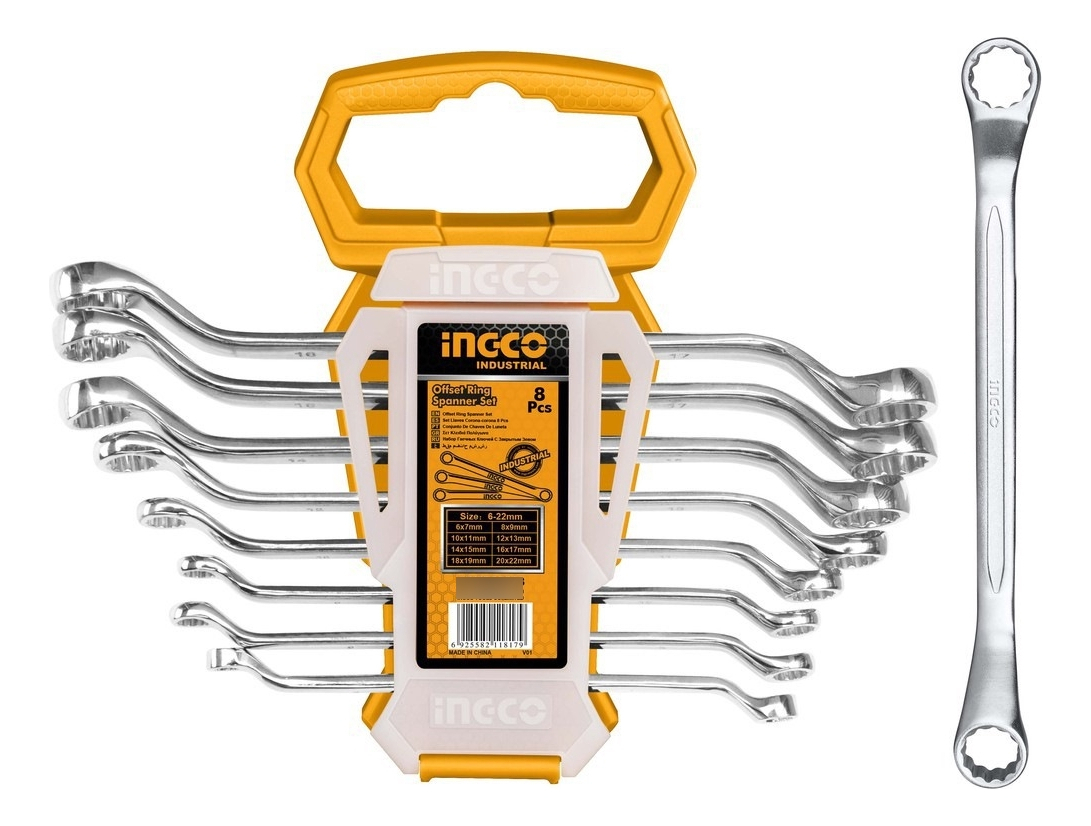 El juego de 8 llaves combinadas curvas Ingco HKSPA3088 se destaca como una herramienta indispensable para profesionales y aficionados del bricolaje. Su fabricación en cromo vanadio les otorga una resistencia y durabilidad excepcionales, preparadas para soportar un uso intensivo y prolongado.