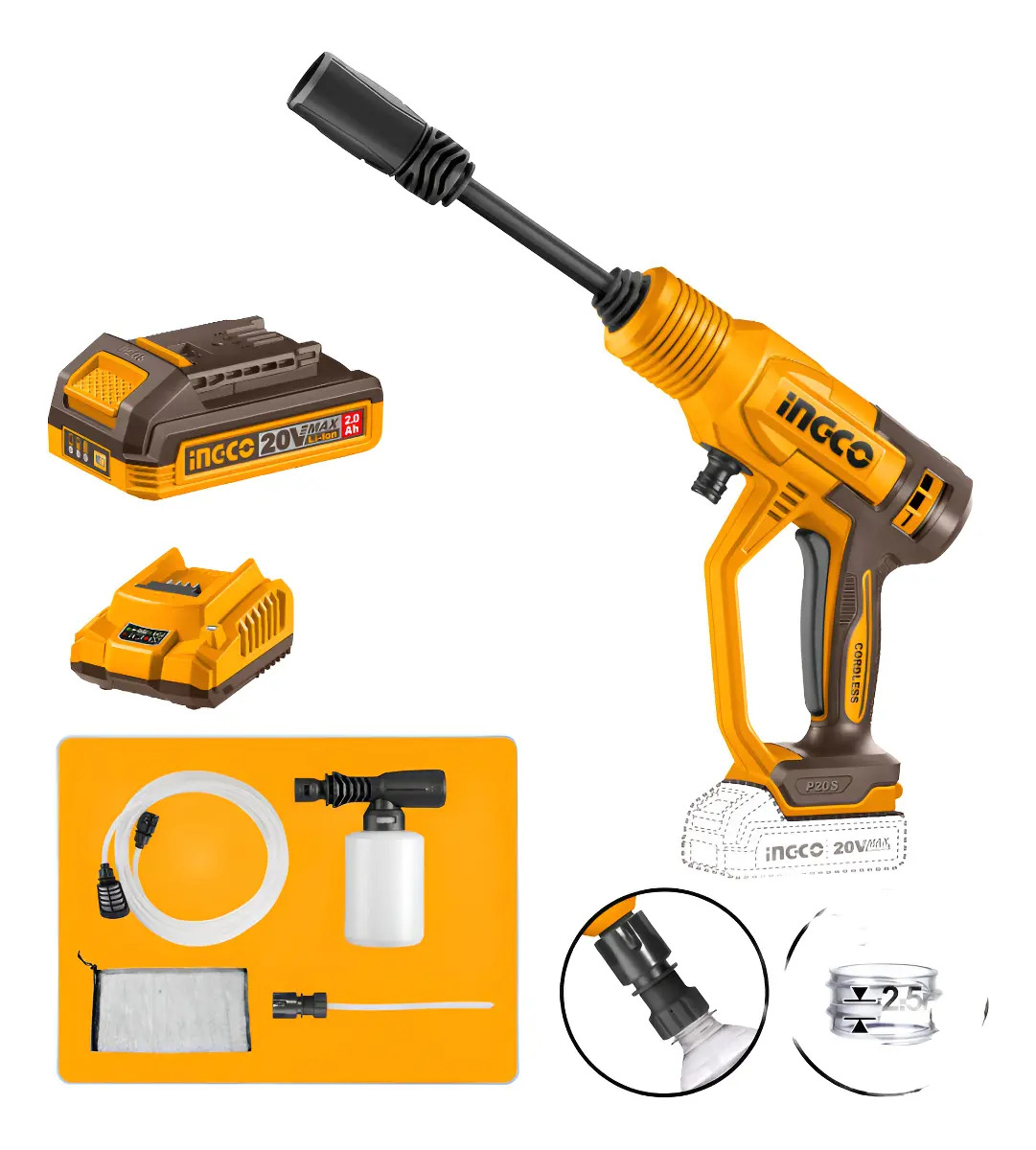HIDROLAVADORA A BATERÍA 20V P20S 24.8BAR C/BATERÍA, CARGADOR + ACCESORIOS