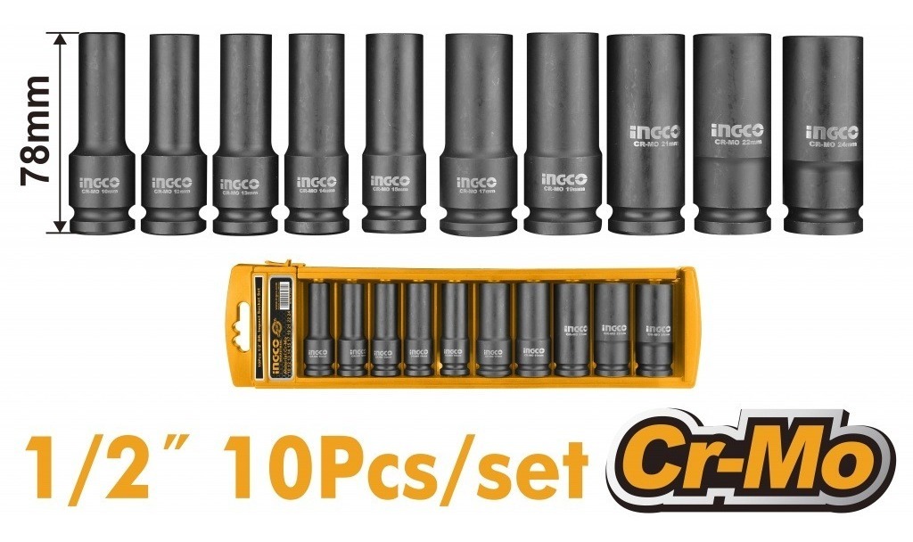 JUEGO 10 DADOS 1/2″ IMPACTO PROFUNDOS INGCO HKISSD12102L