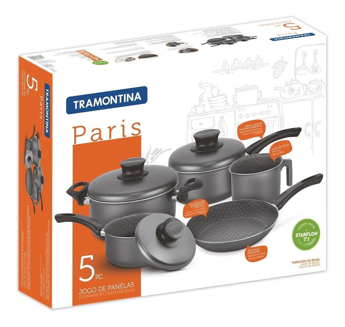 La línea Paris es perfecta para quienes gustan de preparar muchas delicias a la familia y recibir amigos. Además de ollas con diferentes capacidades, dispone de sartenes, hervidores, cuscuzeiras, conjunto baño-maria, olla wok, juegos para fondue y otros. En aluminio revestido con antiadherente Starflon T1 interno y externo, proporcionan una cocción uniforme y son fáciles de lavar, ya que los alimentos no se pegan. La decoración interior de las piezas representa la delicadeza y dedicación de quien cocina. Y los cables, tiradores y pegadores son antitérmicos permitiendo el manejo con seguridad. Pueden ser utilizadas en estufa a gas, eléctrico y vitrocerámico (resistencia eléctrica) y llevadas al lavavajillas.