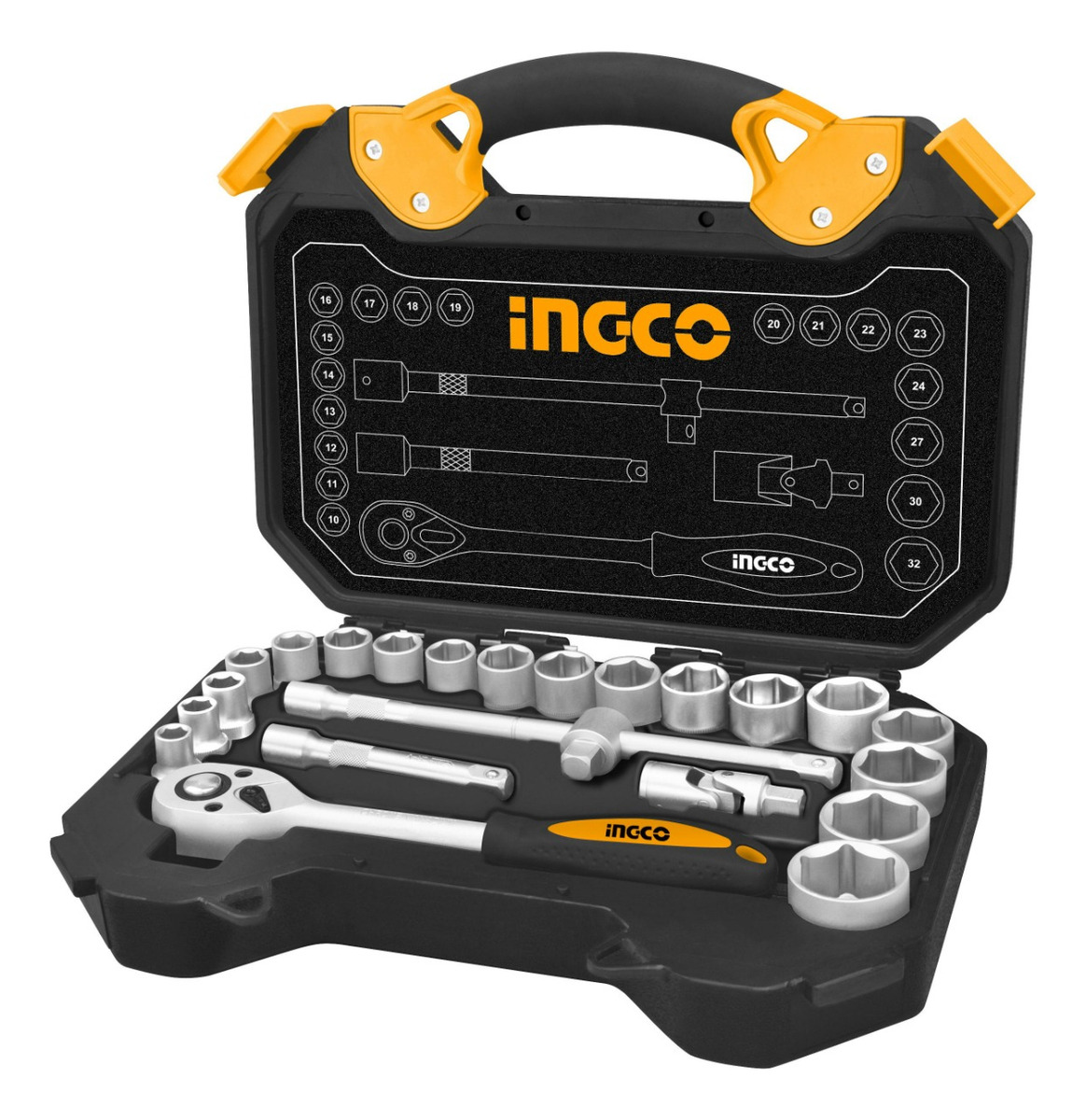 Juego de Enchufes «25pza 1/2» Incluye 1 pza de llave de carraca Dr 1/2 «, 45 t 18pza 1/2 » Dr dado 10-11-12-13-14-15-16-17-18-19-20-21-22-23-24-27-30-32mm 1pza 1/2 » Dr Junta Universal 2pza 1/2 » Dr Extension Bar 125mm y 250mm 2 pza de Enchufe de bujía de 16 mm y 21 mm 1 pza 1/2 » * 250 mm barra deslizante en T Material CR-V (50BV30), tratado térmicamente Embalado por BMC