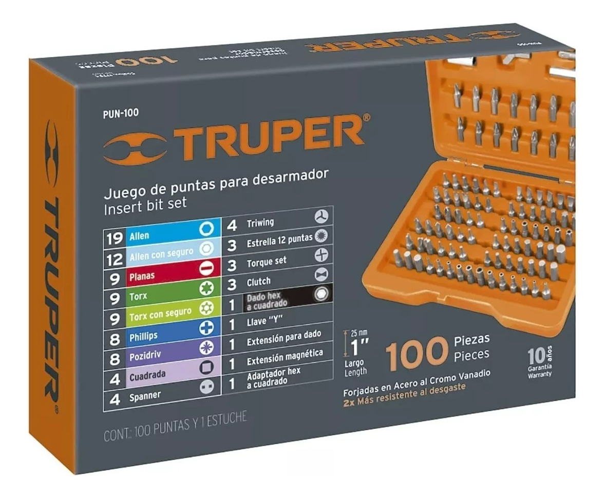 9 Puntas Torx: T8, T10, T15, T20, T25, T27, T30, T40 y T45