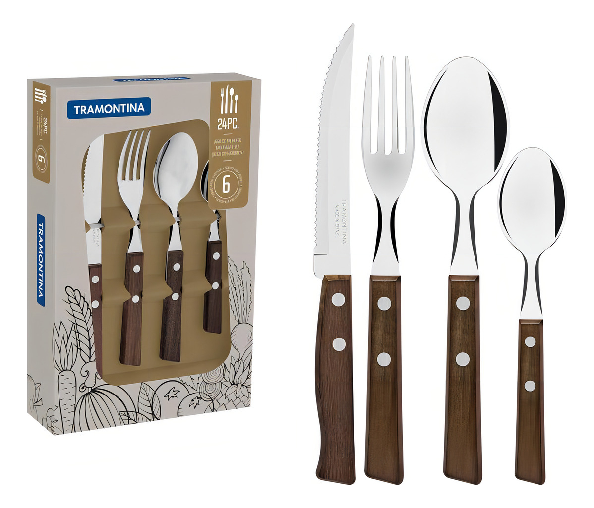 Cuchillería Tramontina Tramontina Tramontina, Cuchillas Tradicionales De Acero Inoxidable, 24 Unidades, Color Marrón cantidad