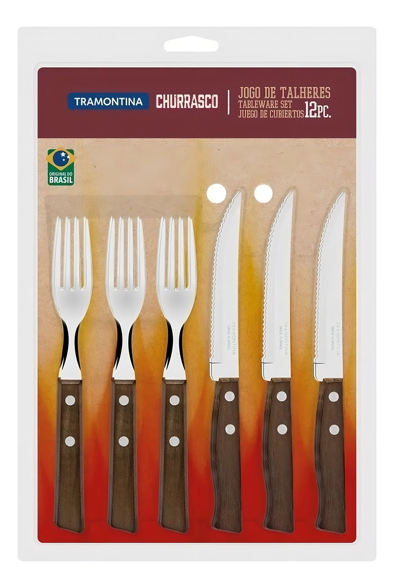 Juego De Cubiertos Para Asado Con Láminas De Acero Inoxidable Y Mangos De Madera Natural 12 Piezas Tramontina Churrasco Marrón cantidad