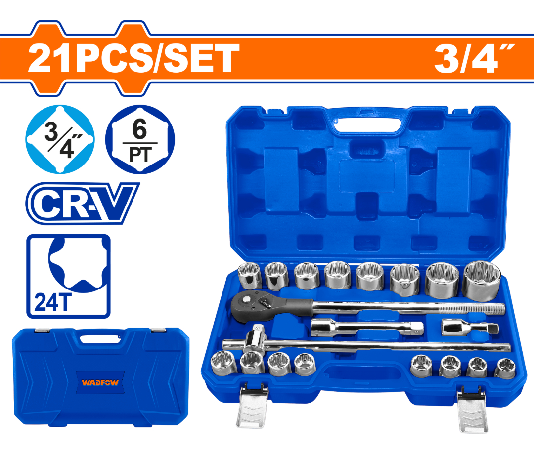 VALIJA 21PCS JUEGO DE DADOS 3/4″ + BARRAS DE EXTENSIÓN