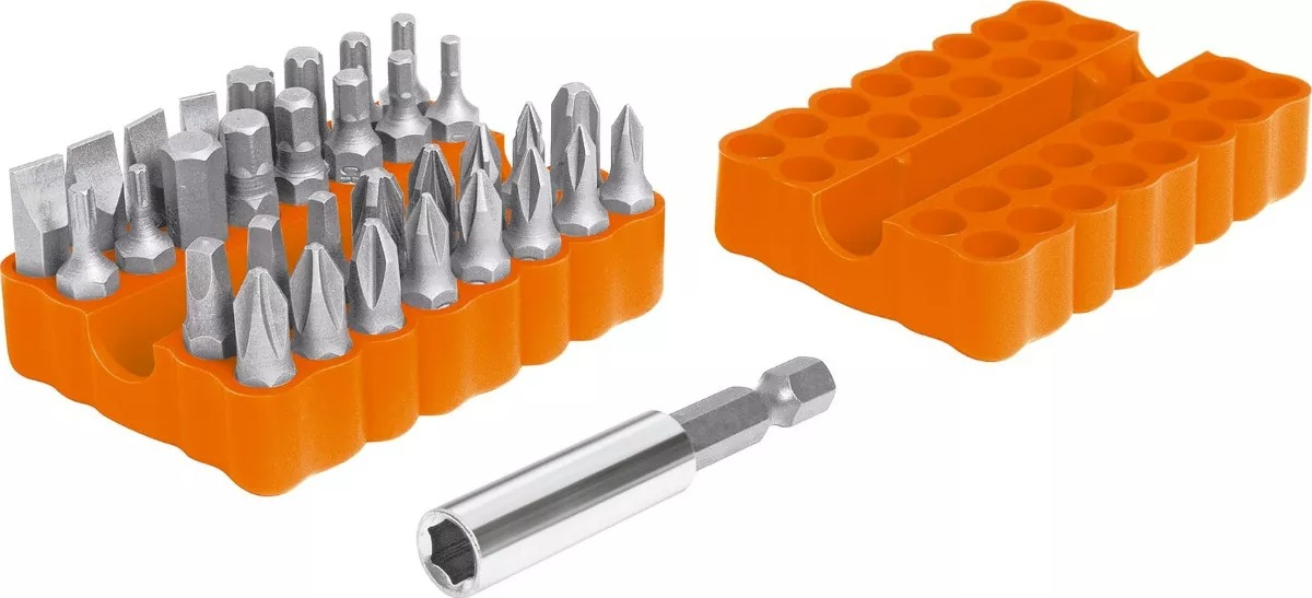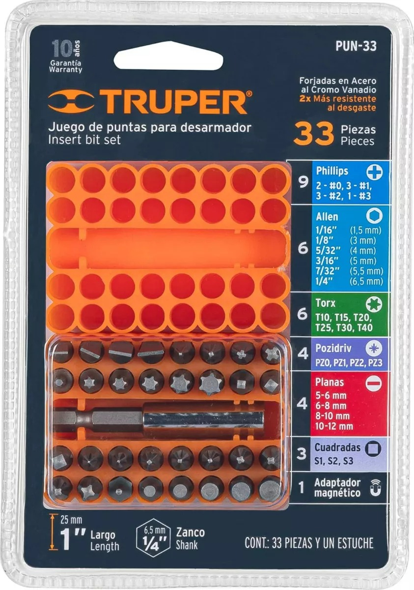 – Juego de 33 puntas mixtas en organizador plástico Truper