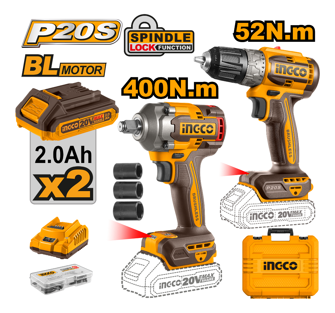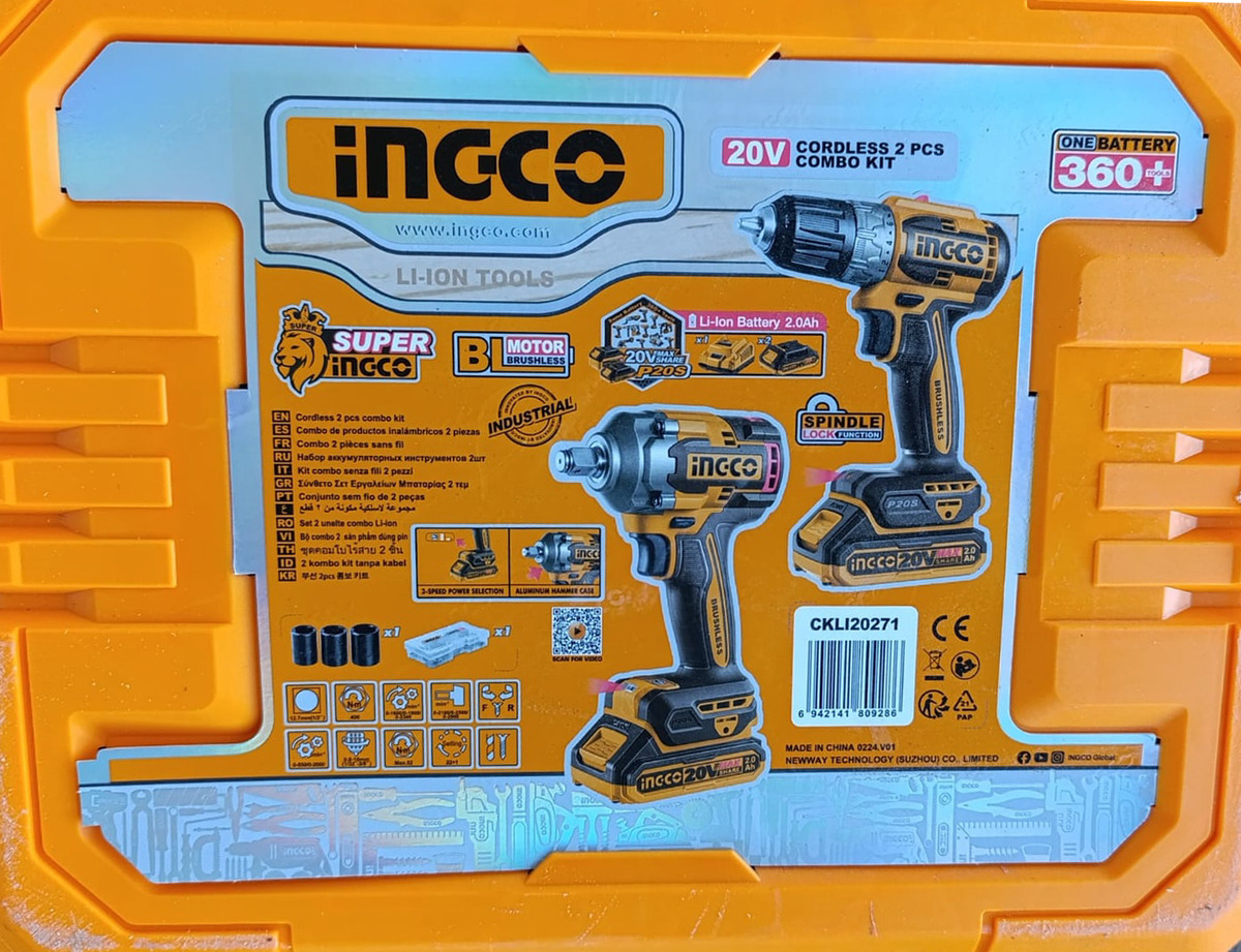 KIT LLAVE IMPACTO 20V Y ATORNILLADOR 20 V P20S CKLI2017 INGCO