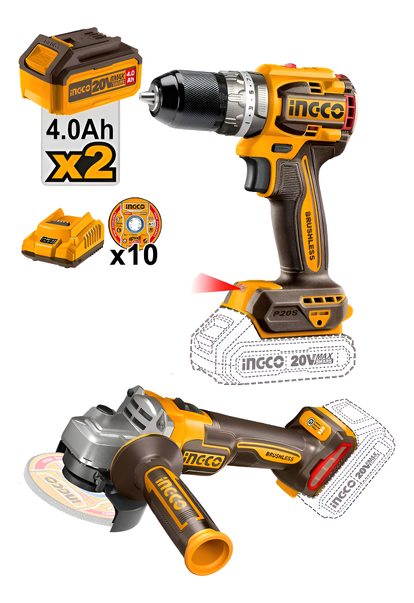 AMOLADORA 20V BL + 2 BAT 4AH + VALIJA Y DISCOS