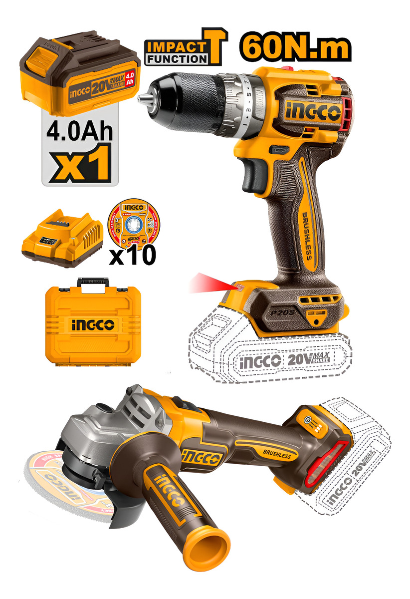 Kit Atornillador + Amoladora 20v + Valija Ingco – L N F