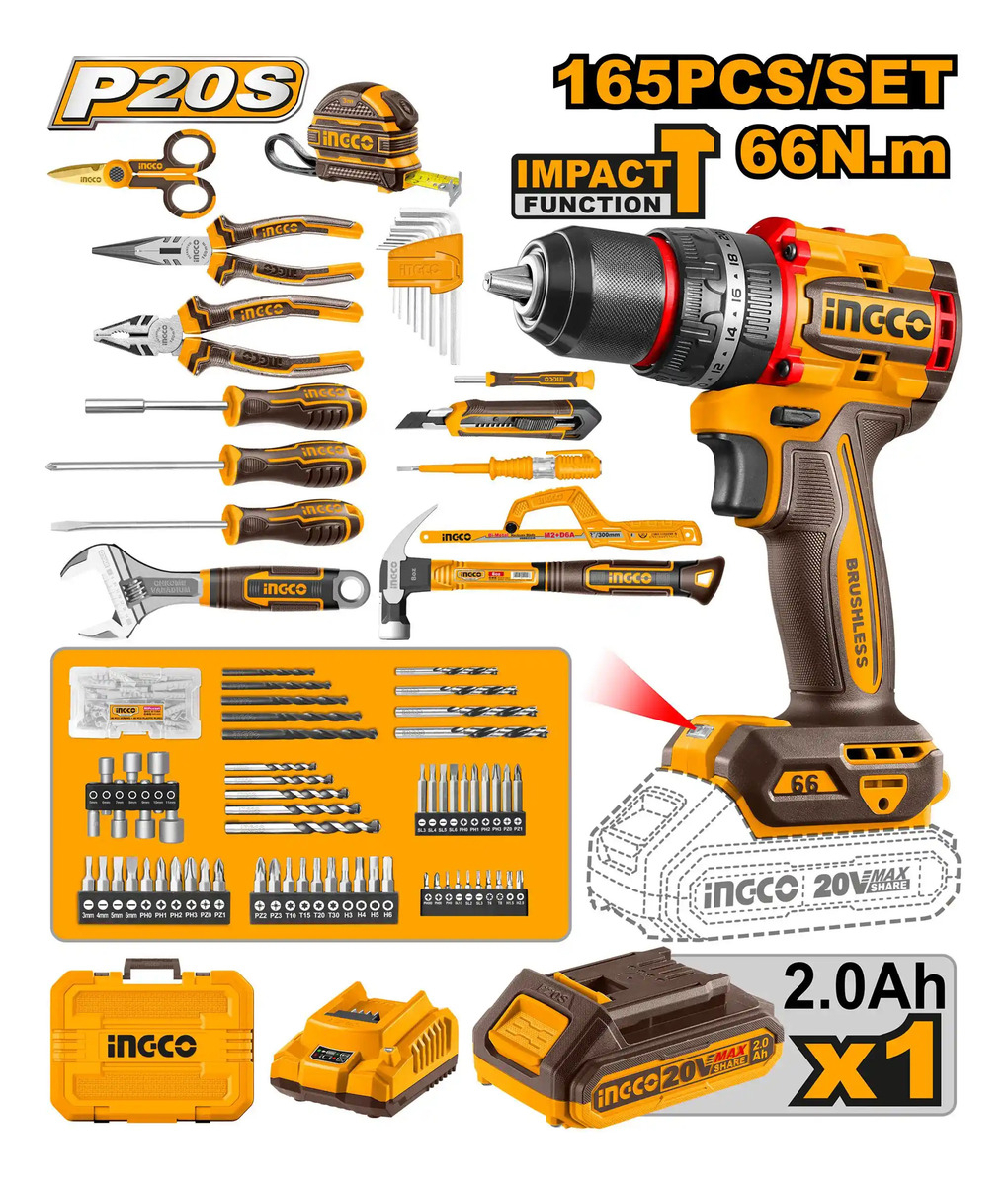 KIT ATORNILLADOR PERCUTOR 20V (CIDLI20035) EN VALIJA C/BAT Y CARGADOR + 165 HERRAMIENTAS