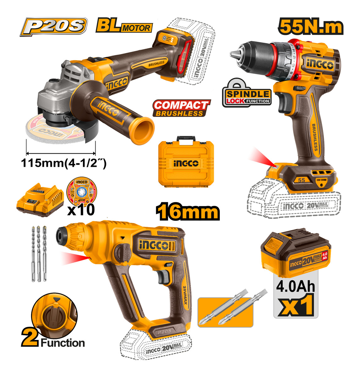 SET AMOLADORA 20V BL + VALIJA INGCO