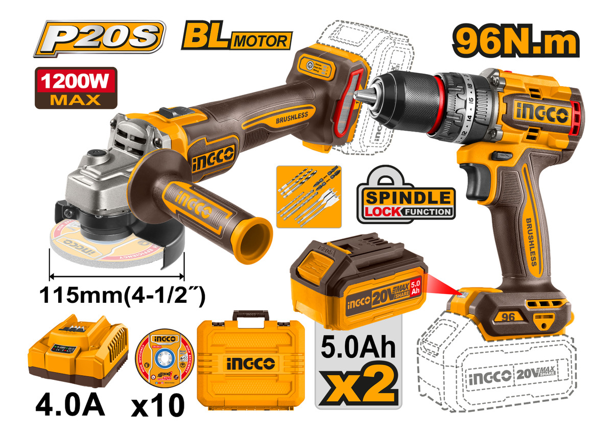 TALADOR ATORNILLADOR C/PERCUTOR A BATERIA BRUSHLESS 20V 96NM + ACCESORIOS,S/CARG S/BAT INGCO CIDLI209681