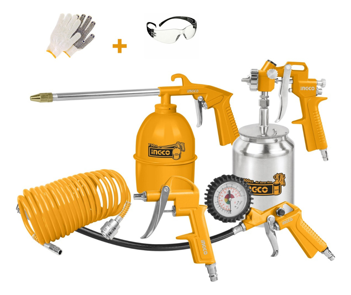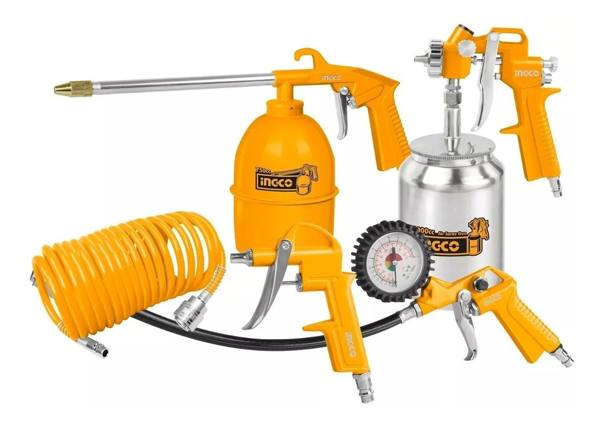 Kit 5 Piezas Ingco Compresor Tacho Metal Akt0051.1 Naranja