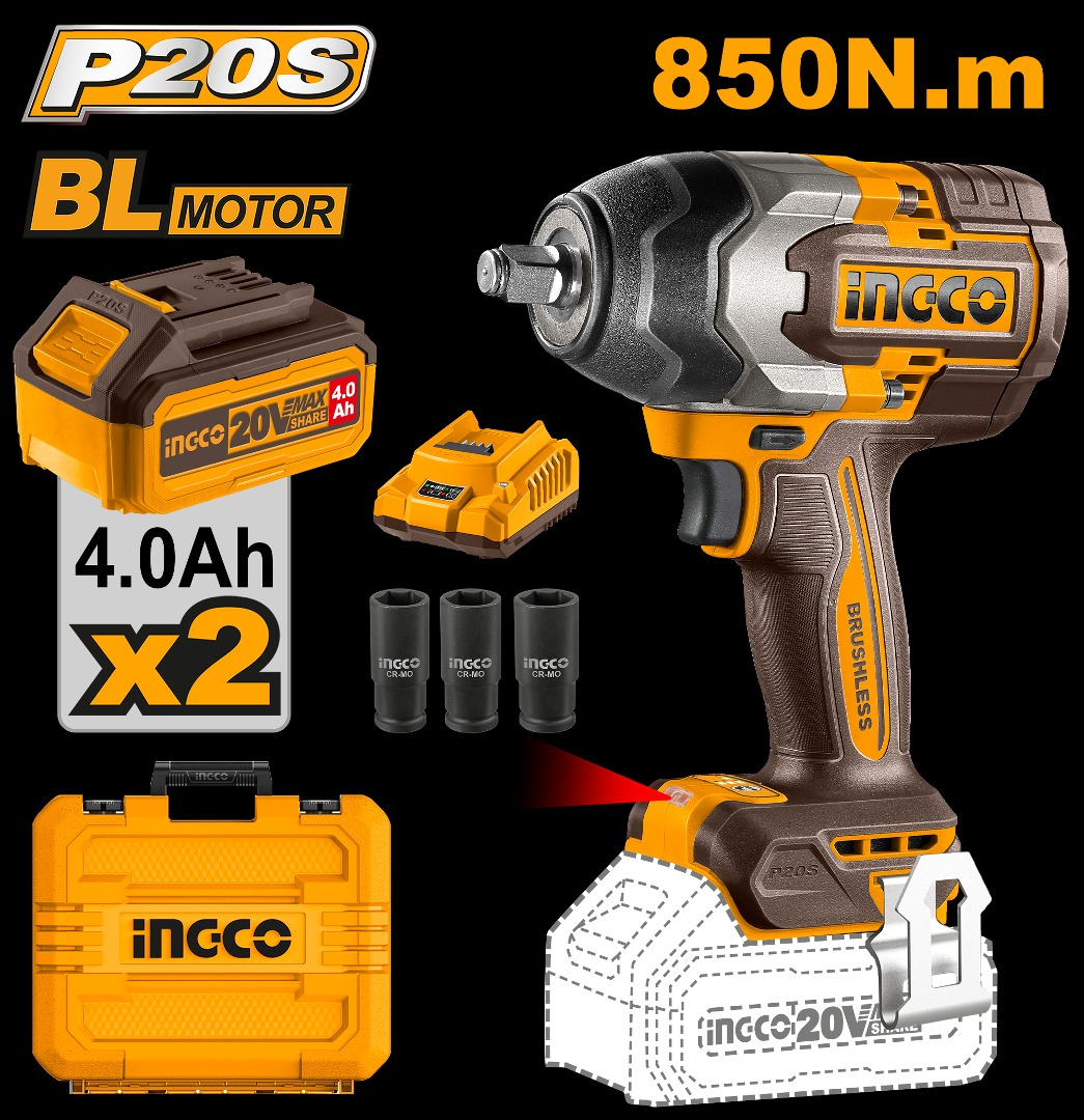 LLAVE DE IMPACTO 850NM 20V P20S C 2BAT+CARG+VALIJA
