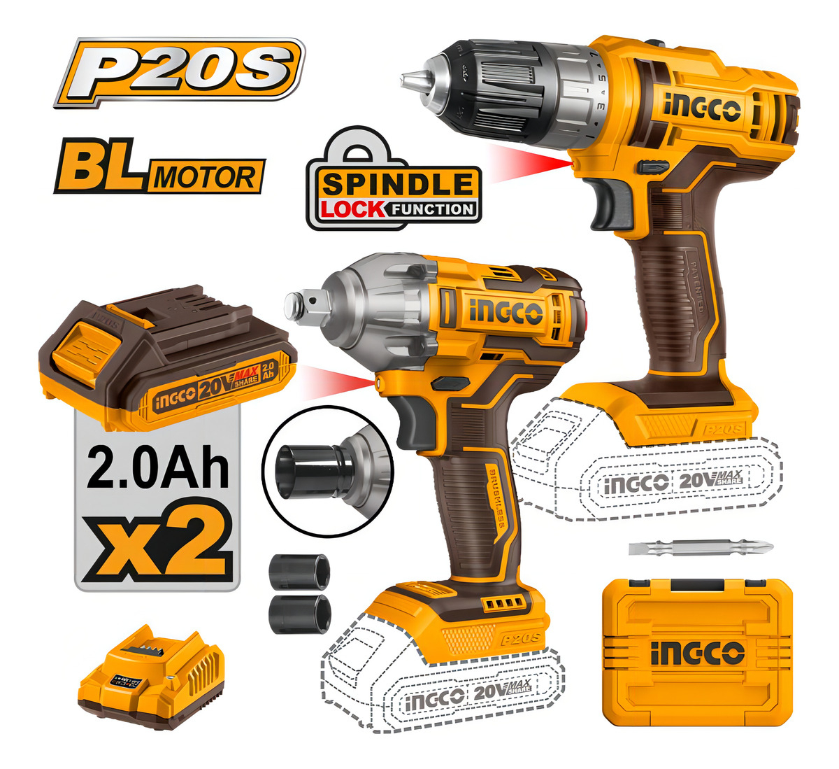 Incluye un taladro inalámbrico de iones de litio de 1 pieza (CDLI200528) y una llave de impacto de iones de litio (CIWLI2038).