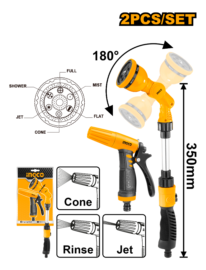 -Varita de agua de ángulo ajustable de 17 » y 6 patrones + adaptador de herramienta de 3/4 »