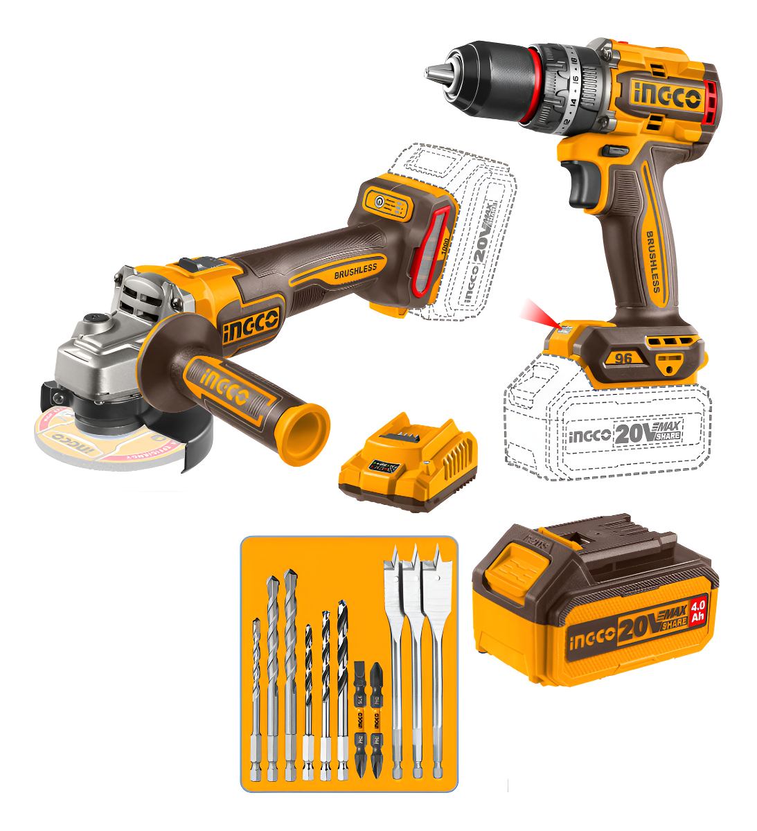 KIT A BATERIA P20S 20V TALADRO ATORNILLADOR C/PERCUTOR 96NM + AMOLADORA ANGULAR, C/2BAT, CARGADOR , ACCESORIOS Y VALIJA