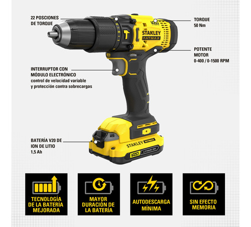 Desde su fundación en 1843, Stanley se ha comprometido a proporcionar productos resistentes, pioneros y adecuados para cualquier tarea a los profesionales de todo el mundo. Cada herramienta Stanley se ha creado para ayudarte a trabajar mejor, de manera más inteligente y con mayor rapidez. Sus taladros se caracterizan por un diseño compacto y liviano para un desempeño continuo en áreas reducidas. Podrás realizar una gran variedad de trabajos de perforación y fijación en diversos materiales.