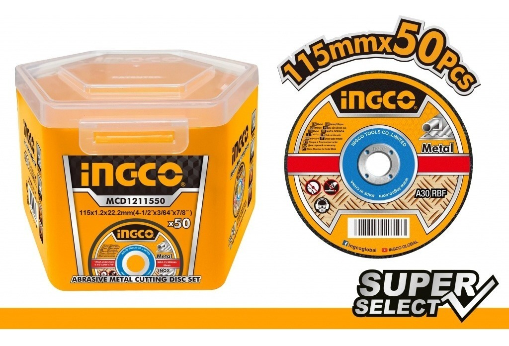LATA X 50 DISCOS 4 1/2 X 1.2MM CORTE METAL INGCO SUPER SELECT