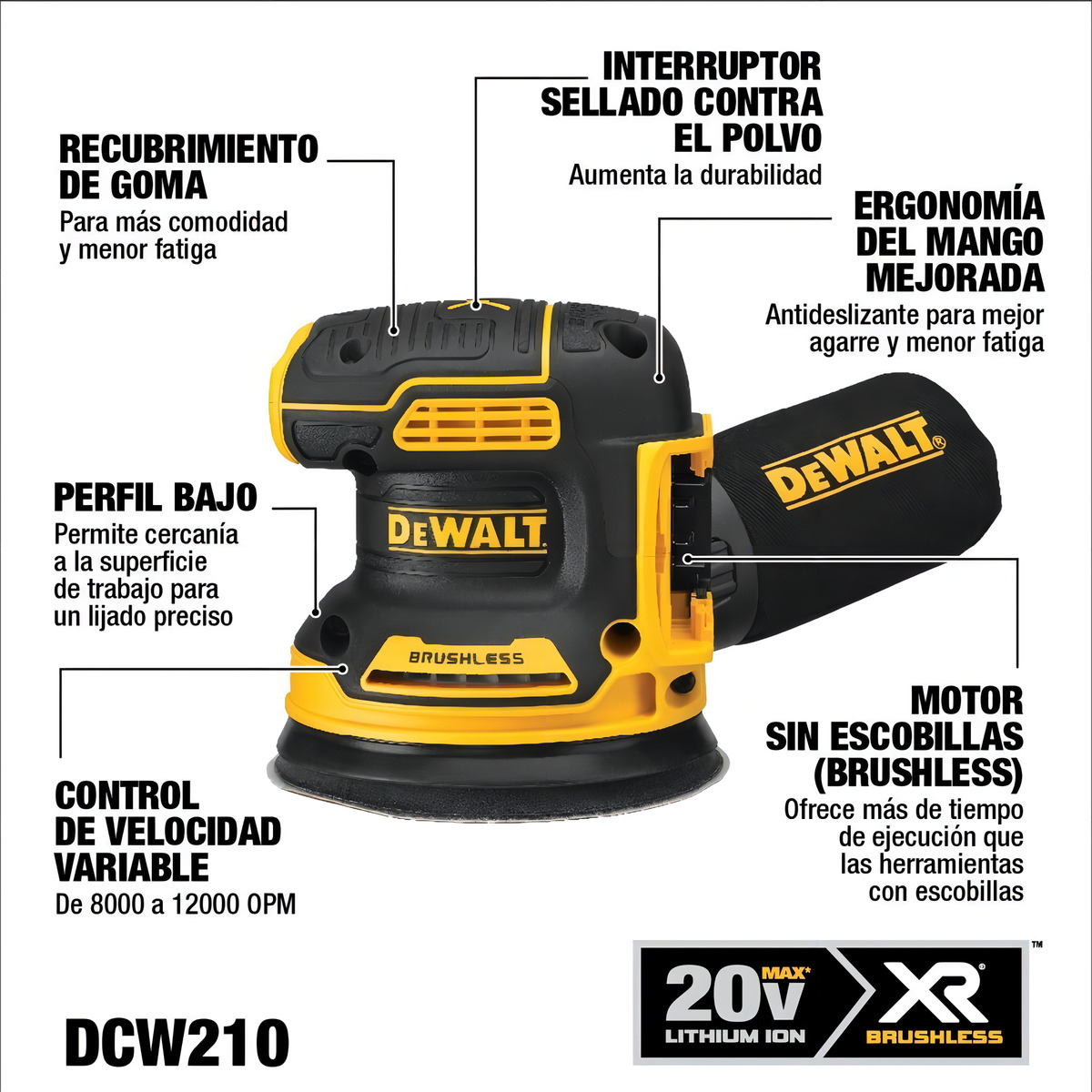 Su bolsa recolectora de polvo te ayudará a lijar más cómodo, sin tener que interrumpir tu trabajo para limpiar la zona.
