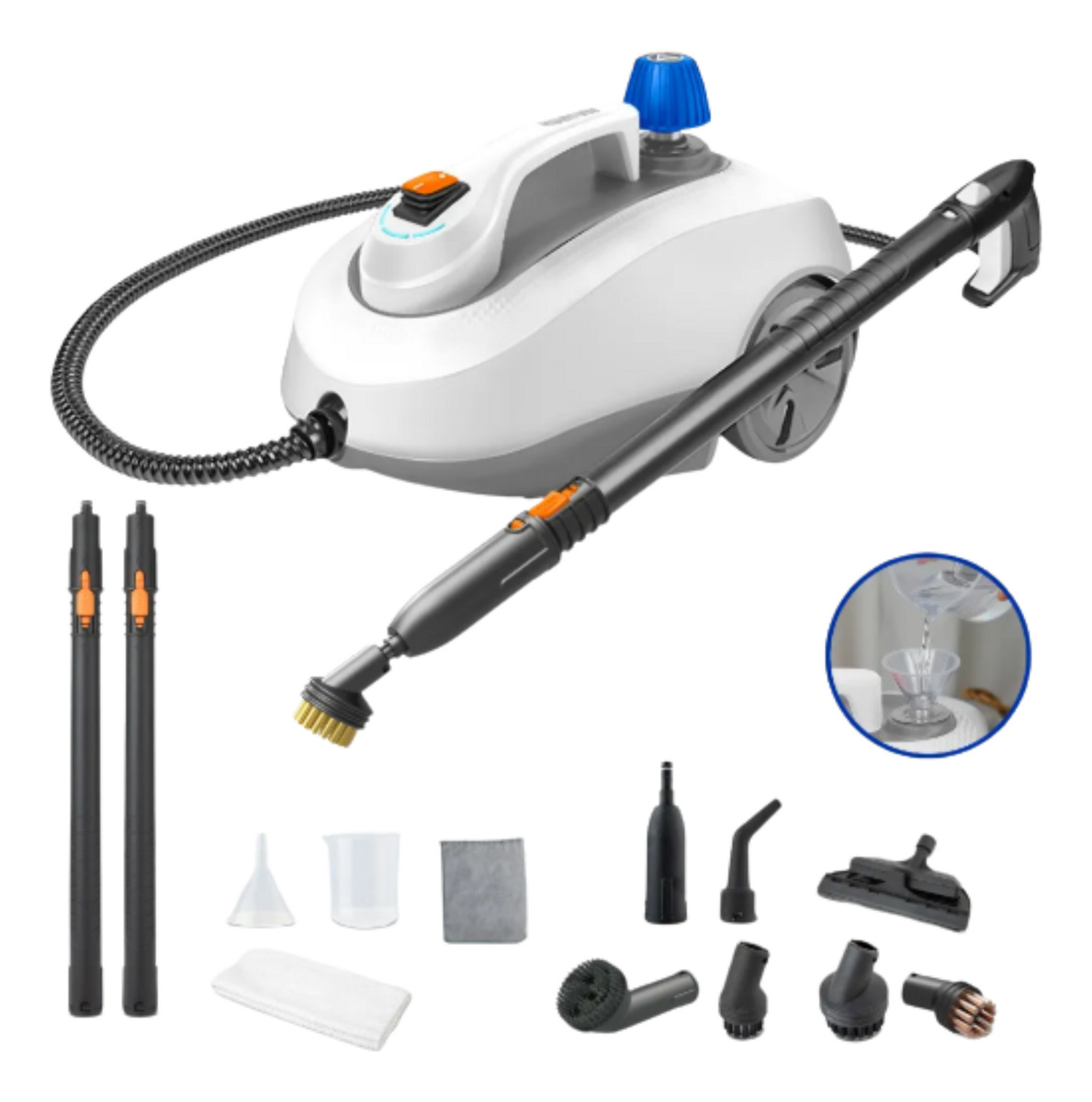 Con 1 cepillo para ventanas y plancha textil.