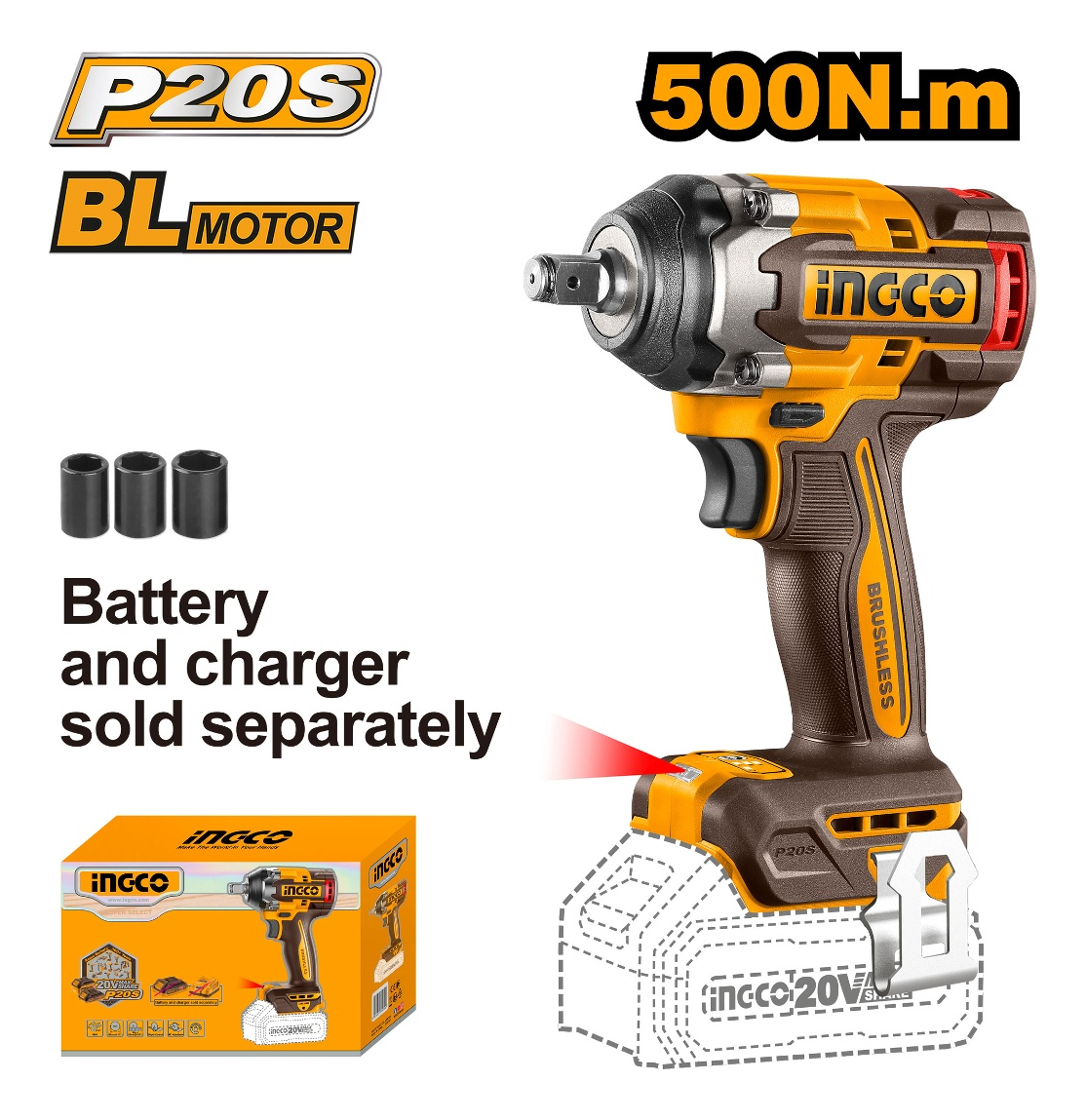 LLAVE DE IMPCATO 500NM 20V P20S BL SIN BAT SIN CARG