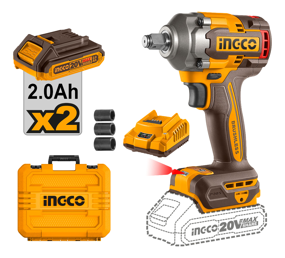 LLAVE DE IMPACTO 400NM 20V P20S BL CON 2 BAT CARG + VALIJA